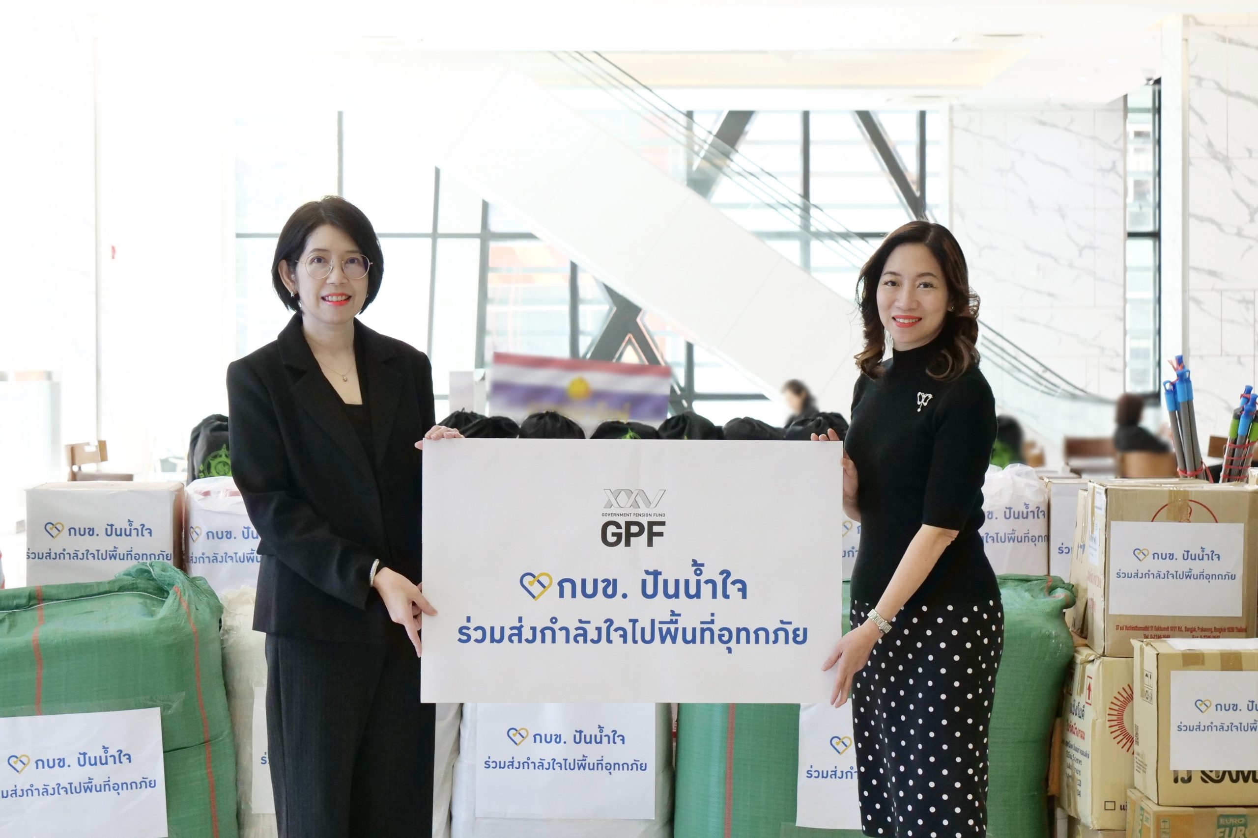 นางสาวดวงใจ เจริญชัย ผู้ช่วยเลขาธิการและผู้บริหารกลุ่มงานสมาชิกสัมพันธ์และสื่อสารองค์กร กองทุนบำเหน็จบำนาญข้าราชการ (กบข.) เป็นตัวแทนส่งมอบเครื่องอุปโภคบริโภคจำเป็น ผ่าน “ศูนย์อำนวยการช่วยเหลือเครือข่ายวายุภักษ์” กระทรวงการคลัง เพื่อกระจายความช่วยเหลือไปยังประชาชนในพื้นที่ภาคใต้ที่ได้รับผลกระทบจากอุทกภัย โดยมีนางสาวอมรรัตน์ จารุรัตน์ ผู้ช่วยปลัดกระทรวงการคลัง เป็นผู้แทนรับมอบ ณ ชั้น 1 อาคาร 150 ปี กระทรวงการคลัง