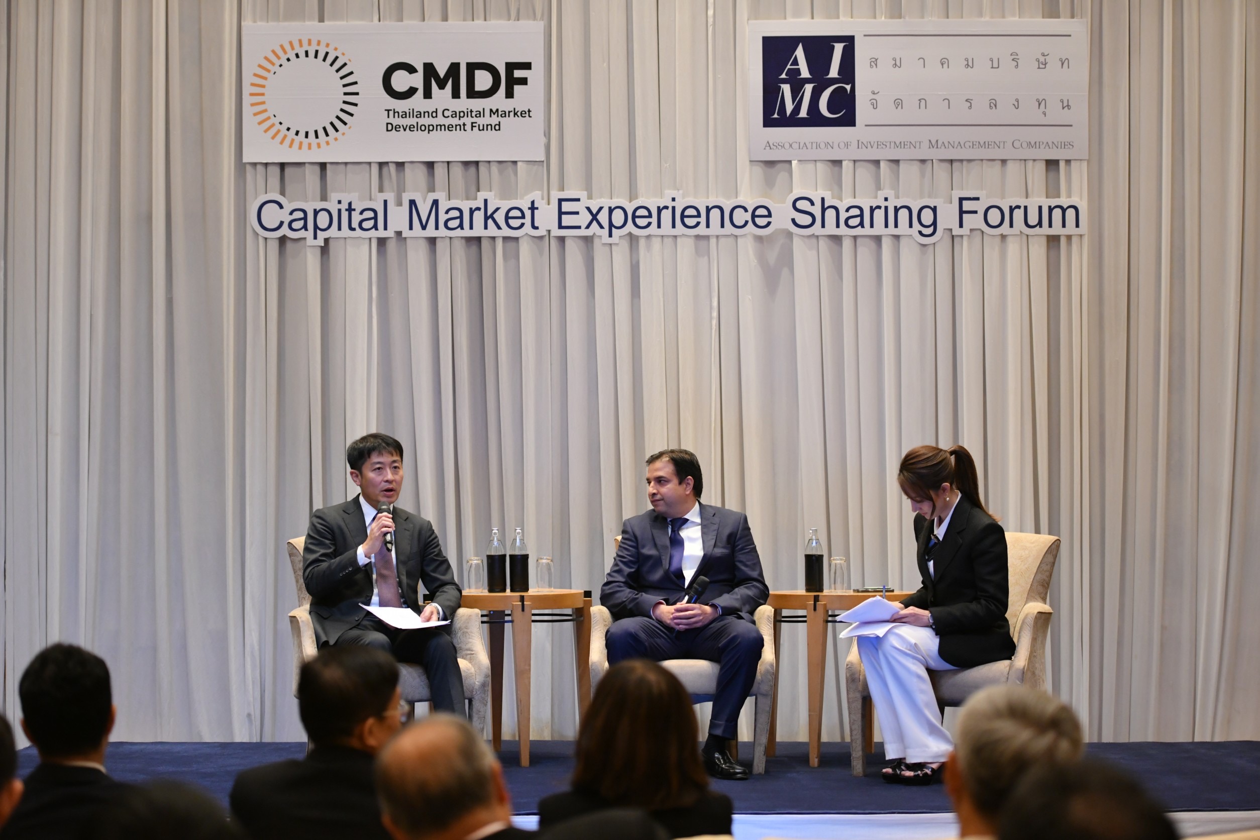 สมาคมบริษัทจัดการลงทุน (AIMC) จัดงานสัมมนาระดมความเห็น “แนวทางการพัฒนาตลาดทุนไทยและการส่งเสริมการออมผ่านกองทุนรวม” ร่วมกับหน่วยงานที่เกี่ยวข้องในตลาดทุนไทยโดยได้รับทุนสนับสนุนการจัดงานจากกองทุนส่งเสริมการพัฒนาตลาดทุน (CMDF) และได้รับเกียรติจากผู้เชี่ยวชาญด้านตลาดทุนของประเทศญี่ปุ่นและอินเดียร่วมแชร์ประสบการณ์ ภายใต้หัวข้อ “Platform for Sustainable Recovery & Springboard for Accelerating Growth” เพื่อระดมความคิด เฟ้นหามาตรการสร้างความเชื่อมั่นต่อการลงทุนในตลาดทุนและขยายฐานผู้ลงทุนไทยได้อย่างยั่งยืน โดยได้รับเกียรติจาก Mr. Takahiro Kawabe, Managing Director & CEO of Nomura Asset Management Singapore Limited และ Mr.Sachin Mahajan, Business Head, Aditya Birla Sun Life Asset Management Company PTE, Ltd ร่วมแชร์ประสบการณ์ มีผู้บริหารองค์กรในอุตสาหกรรมตลาดทุนทั้งภาครัฐและเอกชนเข้าร่วมงานกว่า 65 ท่าน
