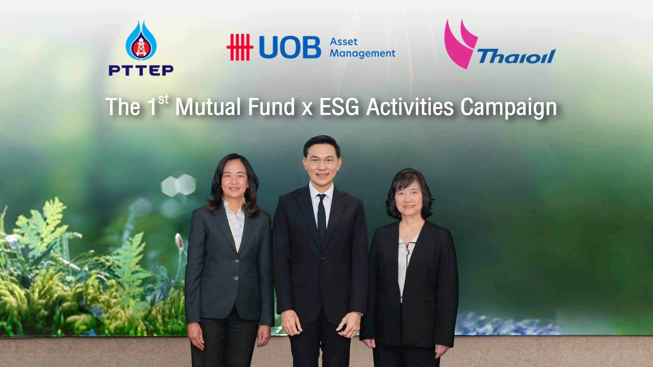 เมื่อเร็ว ๆ นี้ นายวนา พูลผล ประธานเจ้าหน้าที่บริหาร บลจ.ยูโอบี (ประเทศไทย) จำกัด นางชนมาศ ศาสนนันทน์ รองกรรมการผู้จัดการใหญ่ กลุ่มงานการเงินและการบัญชี บริษัท ปตท.สำรวจและผลิตปิโตรเลียม จำกัด (มหาชน) หรือ ปตท.สผ. และ นางวนิดา บุญภิรักษ์ รองกรรมการผู้จัดการใหญ่ ด้านการเงินและบัญชี บริษัท ไทยออยล์ จำกัด (มหาชน) ร่วมกันเปิดตัวโครงการ “The 1st Mutual Fund x ESG Activities Campaign” ที่เชื่อมโยงการบริหารการลงทุนเข้ากับกิจกรรมด้านสิ่งแวดล้อม สังคม และธรรมาภิบาล (ESG) อย่างเป็นรูปธรรม