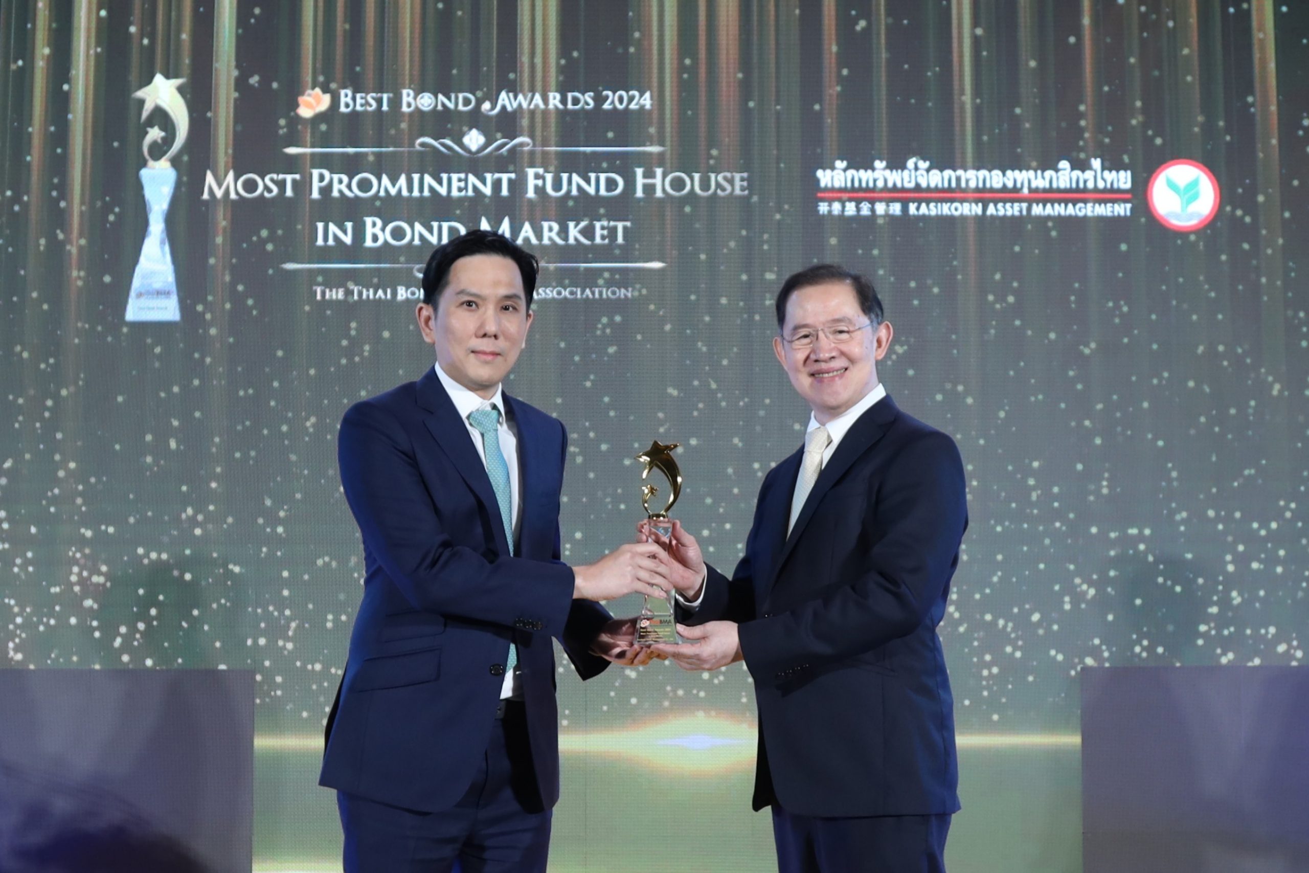 บริษัทหลักทรัพย์จัดการกองทุน กสิกรไทย จำกัด (บลจ.กสิกรไทย) ตอกย้ำความเป็นผู้นำกองทุนตราสารหนี้ ด้วยการคว้ารางวัล “Most Prominent Fund House in Corporate Bond Market” ต่อเนื่องเป็นปีที่ 8 จากงาน ThaiBMA Best Bond Awards 2024 จัดโดยสมาคมตลาดตราสารหนี้ไทย รางวัลอันทรงเกียรตินี้เป็นเครื่องยืนยันถึงความไว้วางใจและความเชื่อมั่นที่ผู้ลงทุนไทยมีต่อ บลจ.กสิกรไทย ในฐานะผู้บริหารจัดการกองทุนตราสารหนี้ชั้นนำ อีกทั้งยังสะท้อนให้เห็นถึงความมุ่งมั่นในการสร้างผลตอบแทนที่ดีและยั่งยืนให้กับผู้ลงทุนอย่างต่อเนื่อง โดยนายฐานันดร โชลิตกุล, CFA, Chief Investment Officer (รองกรรมการผู้จัดการ สายงานจัดการลงทุน) นำทีมผู้จัดการกองทุนตราสารหนี้ของ บลจ.กสิกรไทย เข้ารับรางวัล ณ โรงแรมอีสตินแกรนด์ พญาไท เมื่อเร็วๆ นี้ ความสำเร็จในครั้งนี้ถือเป็นเครื่องพิสูจน์ถึงความเชี่ยวชาญและประสบการณ์อันยาวนานของ บลจ.กสิกรไทย ในการบริหารจัดการกองทุนตราสารหนี้ ซึ่งได้รับการยอมรับในระดับประเทศ