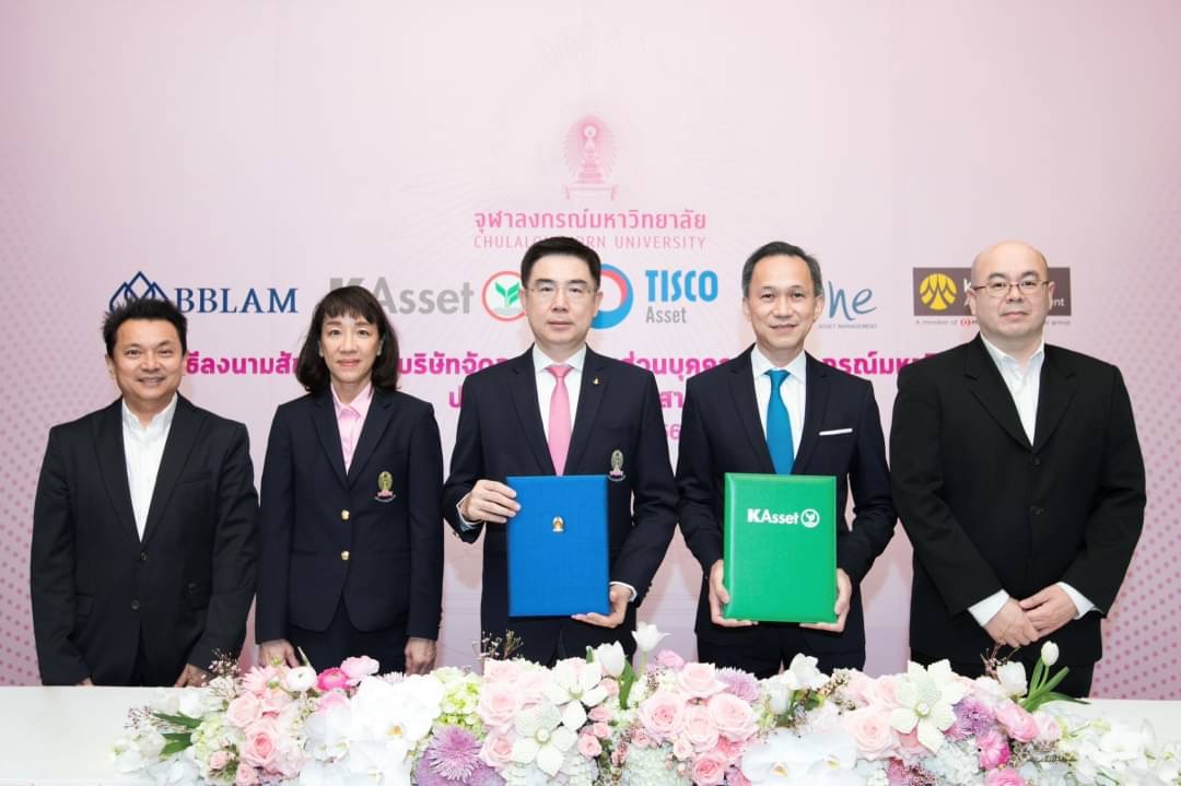 บริษัทหลักทรัพย์จัดการกองทุน กสิกรไทย จำกัด (บลจ.กสิกรไทย) ได้รับความไว้วางใจจากจุฬาลงกรณ์มหาวิทยาลัยให้ทำหน้าที่บริหารกองทุนส่วนบุคคล เป็นปีที่ 10 นับตั้งแต่ปี พ.ศ. 2556 เป็นต้นมา โดยล่าสุดยังคงได้รับมอบหมายให้บริหารกองทุนส่วนบุคคล ประเภทกองทุนตราสารหนี้ จำนวน 2 กองทุน ได้แก่ กองทุนตราสารหนี้เพื่อการบริหารสภาพคล่อง และกองทุนตราสารหนี้เพื่อการบริหารทุนคงยอดเงินต้น ต่อเนื่องเป็นวาระที่ 3 รอบสัญญาระหว่างวันที่ 1 มี.ค. 66 – 28 ก.พ. 69 โดยได้รับเกียรติจาก ศาสตราจารย์ ดร.บัณฑิต เอื้ออาภรณ์ อธิการบดี จุฬาลงกรณ์มหาวิทยาลัย (กลาง) และนายสุรเดช เกียรติธนากร กรรมการผู้จัดการ บลจ.กสิกรไทย (ที่ 2 จากขวา) ร่วมลงนามในสัญญา ณ ห้องรับรอง หอประชุมจุฬาลงกรณ์มหาวิทยาลัย เมื่อเร็วๆ นี้