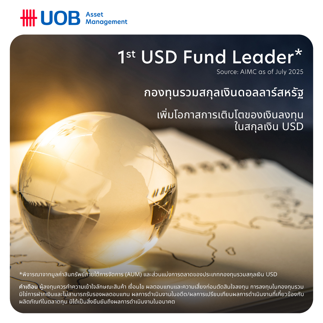 บริษัทหลักทรัพย์จัดการกองทุน ยูโอบี (ประเทศไทย) จำกัด หรือ บลจ.ยูโอบี ได้เริ่มนำเสนอกองทุนรวมในรูปแบบกองทุนสกุลเงินดอลลาร์สหรัฐ (USD) ให้กับนักลงทุนไทย ตั้งแต่ช่วงเดือนมีนาคม 2568 โดยปัจจุบันมีมูลค่าสินทรัพย์ภายใต้การจัดการ (AUM) ประมาณ 252 ล้านดอลลาร์สหรัฐ ซึ่งนับเป็นส่วนแบ่งตลาดสูงถึง 38% และนับเป็นอันดับ 1 ของประเภทกองทุนสกุลเงิน USD (ที่มา AIMC : ณ 31 กรกฎาคม 2568) สะท้อนถึงความเชื่อมั่นของนักลงทุนที่มีต่อคุณภาพการบริหารจัดการกองทุนของ บลจ.ยูโอบี