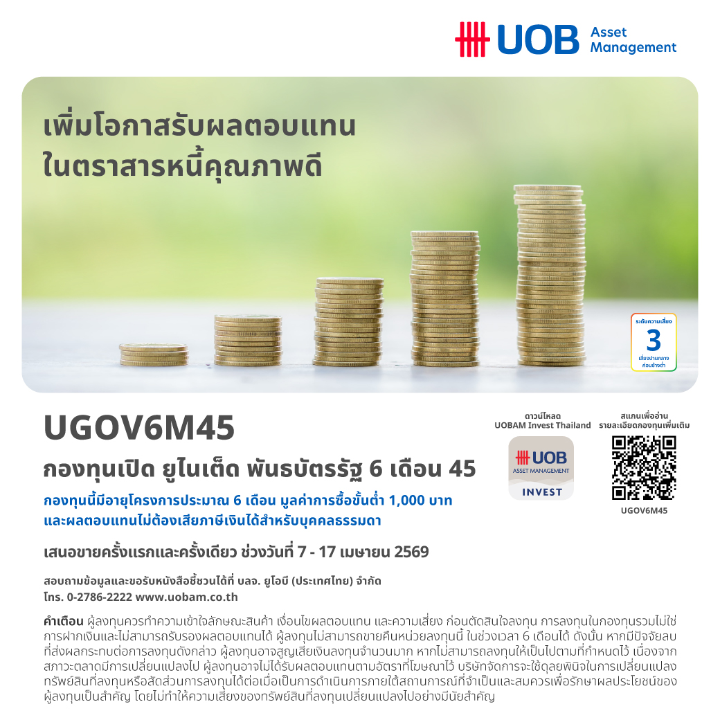 ข้อมูลเพิ่มเติม https://www.uobam.co.th/th/mutual-fund/01044/UGOV6M45