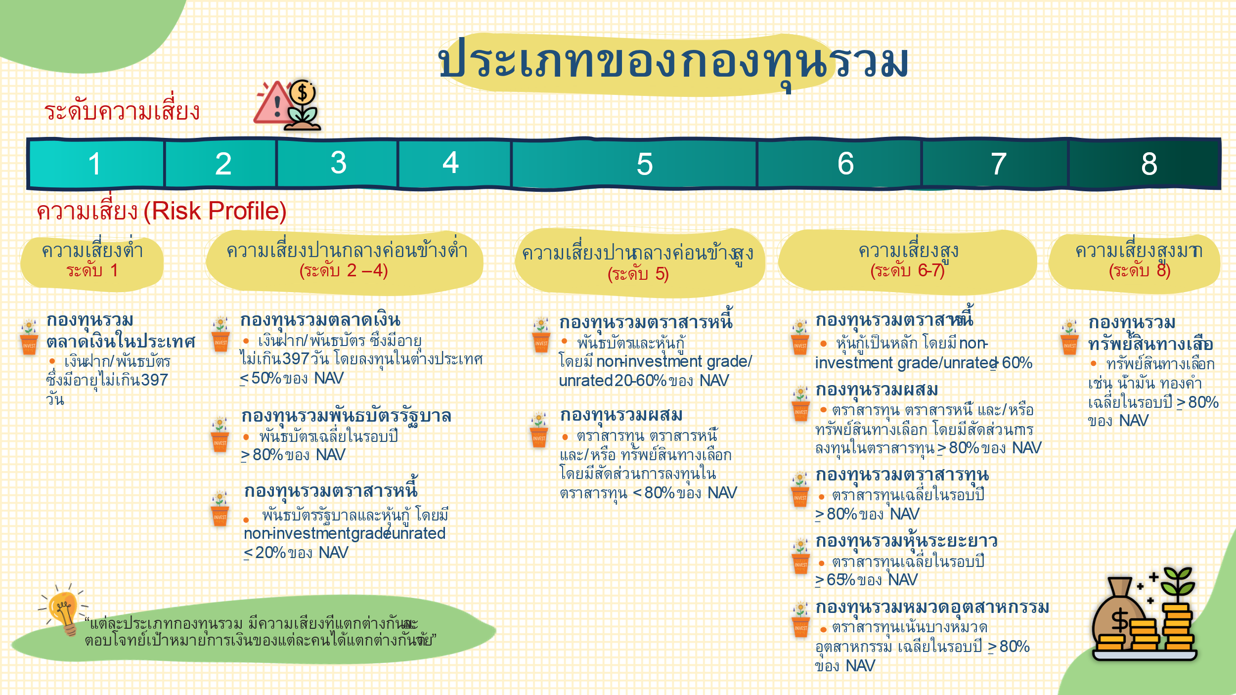 ประเภทกองทุนรวมที่แบ่งตามระดับความเสี่ยง 8 ระดับและ Risk Profile ของผู้ลงทุน
