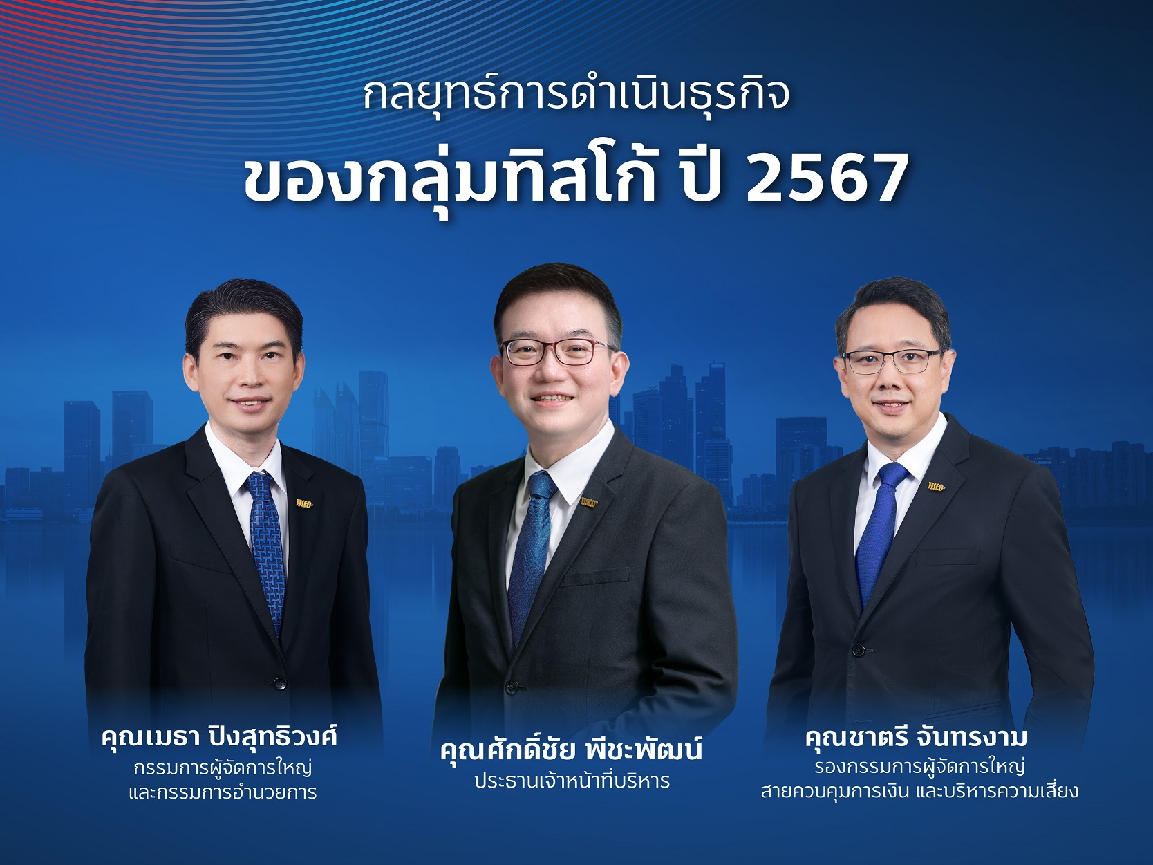 ภายใต้ภาวะเศรษฐกิจที่เต็มไปด้วยความไม่แน่นอน ในปี 2567 กลุ่มทิสโก้ จึงมุ่งเน้นการดำเนินธุรกิจบนพื้นฐานของความยั่งยืน โดยให้ความสำคัญกับการเติบโตอย่างมีคุณภาพ ด้วยการนำความเชี่ยวชาญในทุกแขนงของทั้งกลุ่มธุรกิจมาพัฒนาต่อยอด เพื่อสร้างประสบการณ์ที่ดีและเติมเต็มโอกาสทางการเงินอันจะนำมาสู่ความมั่งคั่งอย่างมั่นคงให้แก่ลูกค้า