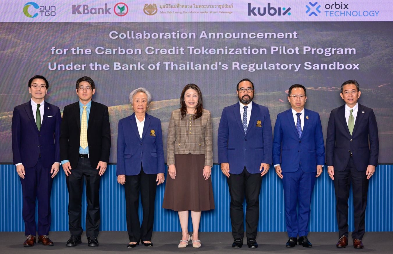 ธนาคารกสิกรไทยร่วมวางรากฐานรองรับการเปลี่ยนผ่านสู่ตลาดคาร์บอนเครดิตภาคบังคับในอนาคต ประสานความร่วมมือกับพันธมิตรชั้นนำ มูลนิธิแม่ฟ้าหลวง ในพระบรมราชูปถัมภ์ องค์การบริหารจัดการก๊าซเรือนกระจก (อบก.) บริษัท คิวบิกซ์ ดิจิทัล แอสเสท จำกัด (Kubix) และ บริษัท ออร์บิกซ์ เทคโนโลยี แอนด์ อินโนเวชั่น (Orbix Technology) จำกัด ประกาศความร่วมมือโครงการนำร่องการแปลงคาร์บอนเครดิตเป็นโทเคนดิจิทัล (Carbon Credit Tokenization Pilot Program) ครั้งแรกในประเทศไทย ภายใต้กรอบ Regulatory Sandbox ของธนาคารแห่งประเทศไทย เพื่อยกระดับการซื้อขายและชดเชยคาร์บอนเครดิตด้วยเทคโนโลยีบล็อกเชน เพิ่มความโปร่งใสและประสิทธิภาพในการดำเนินธุรกรรมสู่เป้าหมาย Net Zero ตอกย้ำบทบาทผู้นำด้านนวัตกรรมทางการเงินและการขับเคลื่อนเศรษฐกิจสีเขียวของประเทศไทยอย่างเป็นรูปธรรม