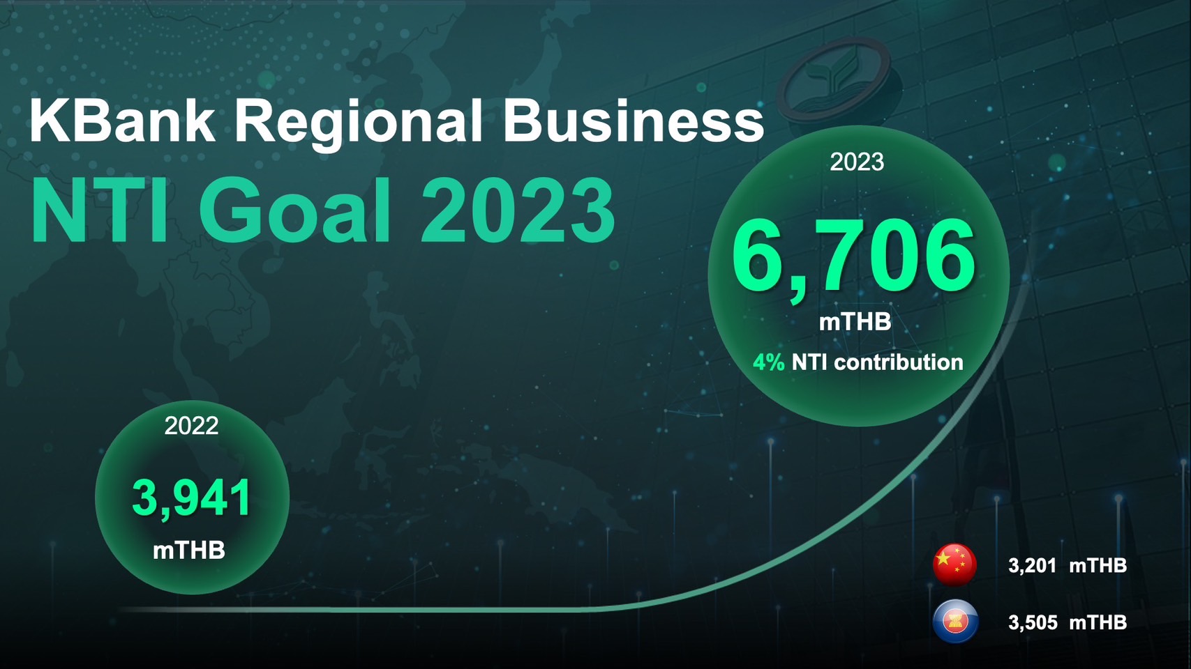 นายชัช  เหลืองอาภา รองกรรมการผู้จัดการ ธนาคารกสิกรไทย เปิดเผยว่า สำหรับเป้าหมายและกลยุทธ์การเติบโตของธนาคารกสิกรไทย ในปี 2566 ซึ่งเป็นปีแห่งโอกาสในการเติบโตของภูมิภาคอาเซียน ธนาคารกสิกรไทยจึงขับเคลื่อนธุรกิจสู่การเป็นธนาคารแห่งภูมิภาค AEC+3 (A Regional Bank of Choice) อย่างต่อเนื่อง โดยมุ่งเน้นขยายธุรกิจในจีน เวียดนาม อินโดนีเซีย กัมพูชา และสปป.ลาว ด้วยยุทธศาสตร์การเงินผ่านดิจิทัลแบงก์กิ้ง รวมทั้งบริการที่มากกว่าบริการธนาคาร (Beyond Banking) จากการประสานศักยภาพทางเทคโนโลยีและพันธมิตร เพื่อการพัฒนาบริการที่จะช่วยให้ลูกค้าในภูมิภาคนี้มีชีวิตที่ดี พร้อมร่วมขับเคลื่อนเศรษฐกิจในภูมิภาค ธนาคารกสิกรไทยได้กำหนดแนวทางการดำเนินธุรกิจและเป้าหมายสำคัญในประเทศยุทธศาสตร์ ดังนี้