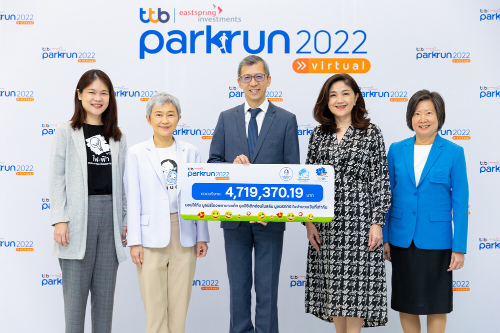 ทีเอ็มบีธนชาตและอีสท์สปริง อินเวสท์เมนทส์ ประกาศความสำเร็จกิจกรรมเดิน-วิ่งการกุศลแห่งปี “ทีทีบี | อีสท์สปริง พาร์ครัน 2022” (ttb | Eastspring parkrun 2022) ครั้งที่ 10 งานวิ่งที่เปลี่ยน…ให้น้อง ๆ กลับมามีรอยยิ้มได้อีกครั้ง ด้วยการชวนทุกคนมาร่วมกัน Make REAL Change หรือสร้างการเปลี่ยนแปลงที่มีความหมายให้กับสังคมและผู้คนรอบตัวให้มีชีวิตที่ดีขึ้น