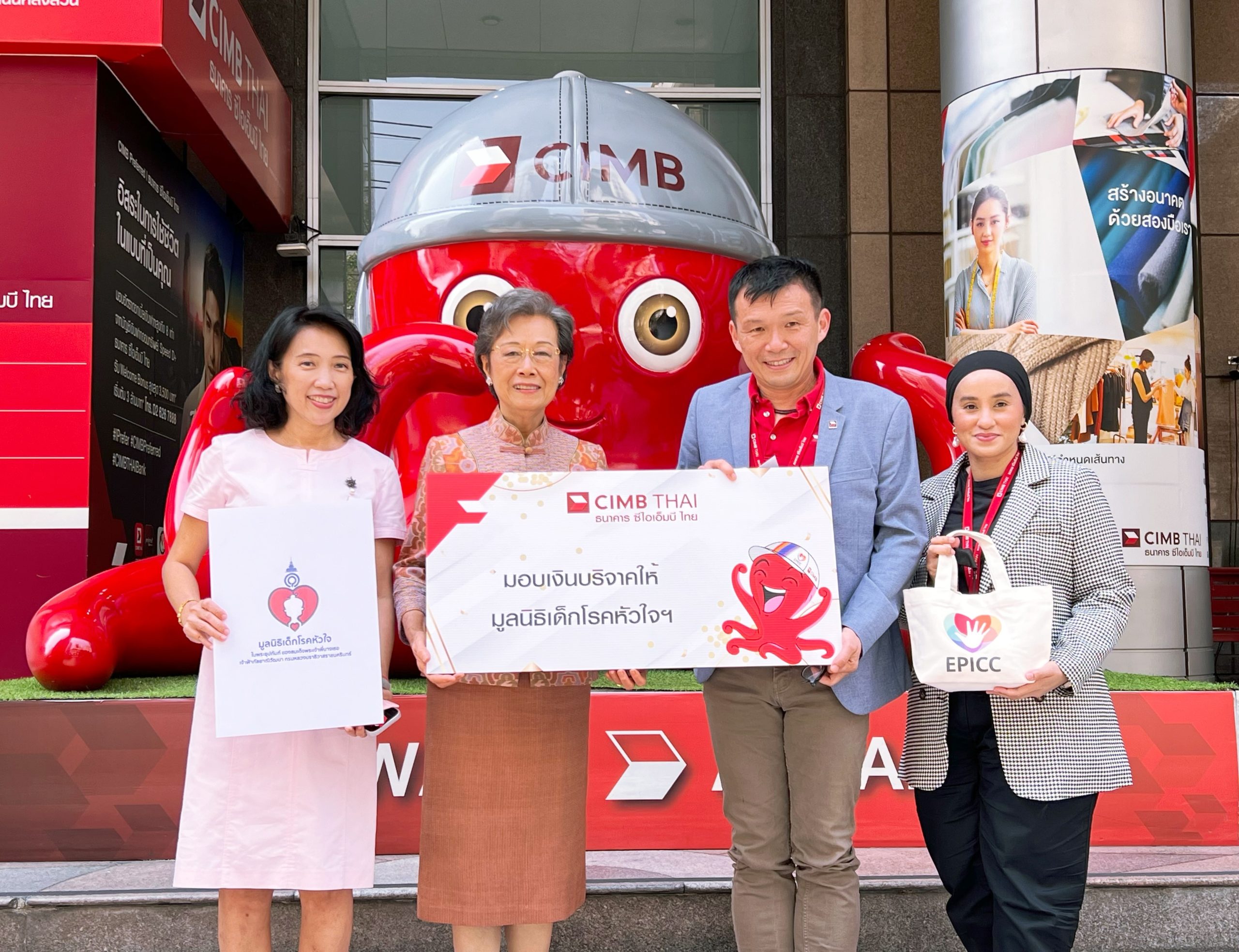 พอล วอง ชี คิน กรรมการผู้จัดการใหญ่และประธานเจ้าหน้าที่บริหาร และกนกไพ วงศ์สถิตย์พร รองกรรมการผู้จัดการใหญ่ ทรัพยากรบุคคล ธนาคาร ซีไอเอ็มบี ไทย จำกัด (มหาชน) เป็นตัวแทนธนาคารส่งมอบเงินที่ระดมทุนได้จากการจำหน่ายดอกกุหลาบกระดาษและดินสอ ในกิจกรรมของพนักงาน ภายใต้แคมเปญ Heart 2 Heart ในช่วงวันวาเลนไทน์ที่ผ่านมา โดยเป็นรายได้ที่ไม่หักค่าใช้จ่าย บริจาคให้มูลนิธิเด็กโรคหัวใจฯ เพื่อส่งต่อความรักและช่วยเหลือเด็กที่เป็นโรคหัวใจในพื้นที่ห่างไกล โดยมีพนิดา ชอบวณิชชา กรรมการมูลนิธิฯ เป็นผู้แทนรับมอบ นอกจากนี้ ธนาคารมีนโยบายส่งเสริม Sustainability จึงคัดสรรและอุดหนุนสินค้าลดโลกร้อน เพื่อประโยชน์ต่อสังคมและก้าวไปข้างหน้าอย่างยั่งยืน