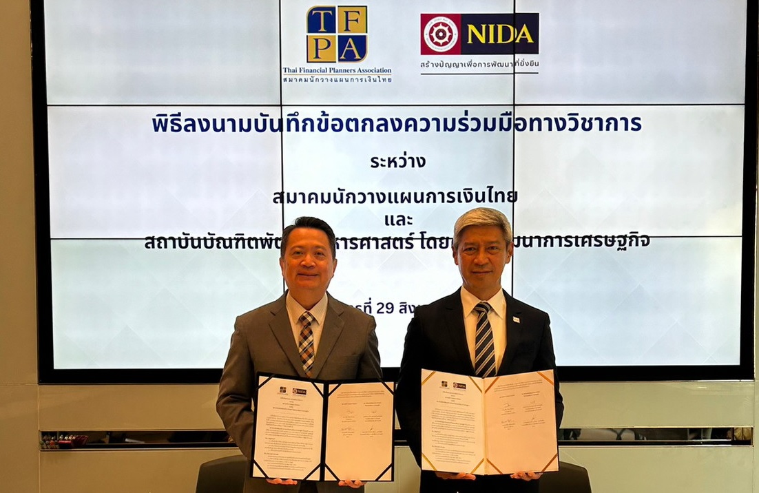 สมาคมนักวางแผนการเงินไทย และสถาบันบัณฑิตพัฒนบริหารศาสตร์ (NIDA) โดยคณะพัฒนาการเศรษฐกิจ ได้ลงนามในบันทึกข้อตกลงความร่วมมือทางวิชาการ เพื่อร่วมมือกันในการพัฒนานักศึกษาให้มีความรู้ด้านการวางแผนการเงินส่วนบุคคลจากโครงงานวิศวกรรมการเงิน เตรียมพร้อมสำหรับการก้าวสู่เส้นทางอาชีพด้านการวางแผนการเงิน และการมีทักษะทางการเงินที่ดี รวมทั้งสร้างเครือข่ายประสานความร่วมมือกับสถาบันอุดมศึกษา ในการแลกเปลี่ยนองค์ความรู้และแบ่งปันทรัพยากรร่วมกัน