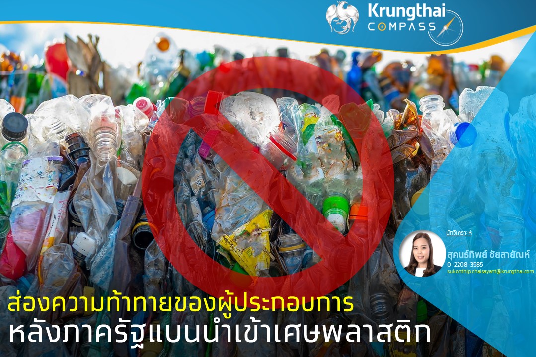 อีกทั้ง Krungthai COMPASS มองว่า มาตรการห้ามนำเข้าเศษพลาสติกจากต่างประเทศจะเป็นปัจจัยผลักดันให้ภาครัฐส่งเสริมการใช้ขยะพลาสติกภายในประเทศมากขึ้น รวมทั้งสร้างความร่วมมือตลอดห่วงโซ่อุปทานรีไซเคิลในการคัดแยกและเก็บรวบรวมขยะแบบแยกประเภท เพื่อให้เป็นไปตามเป้าหมาย Roadmap การจัดการขยะพลาสติกที่ต้องการส่งเสริมให้ประชาชนคัดแยกขยะและนำขยะพลาสติกกลับมาใช้ประโยชน์ 100% ภายในปี 2570 จะทำให้ขยะพลาสติกที่ ยังไม่ได้นำกลับมาใช้ประโยชน์อีกประมาณ 1.5–2 ล้านตันต่อปีสามารถเข้าสู่กระบวนการรีไซเคิลได้อีกจำนวนมาก ซึ่งเพียงพอต่อความต้องการนำเข้าของภาคอุตสาหกรรมที่ราว 6.8 แสนตันต่อปี ส่วนใหญ่เป็นขยะพลาสติกประเภท PET, PE และ PP ซึ่งเป็นประเภทของขยะพลาสติกที่มีอยู่จำนวนมากภายในประเทศ