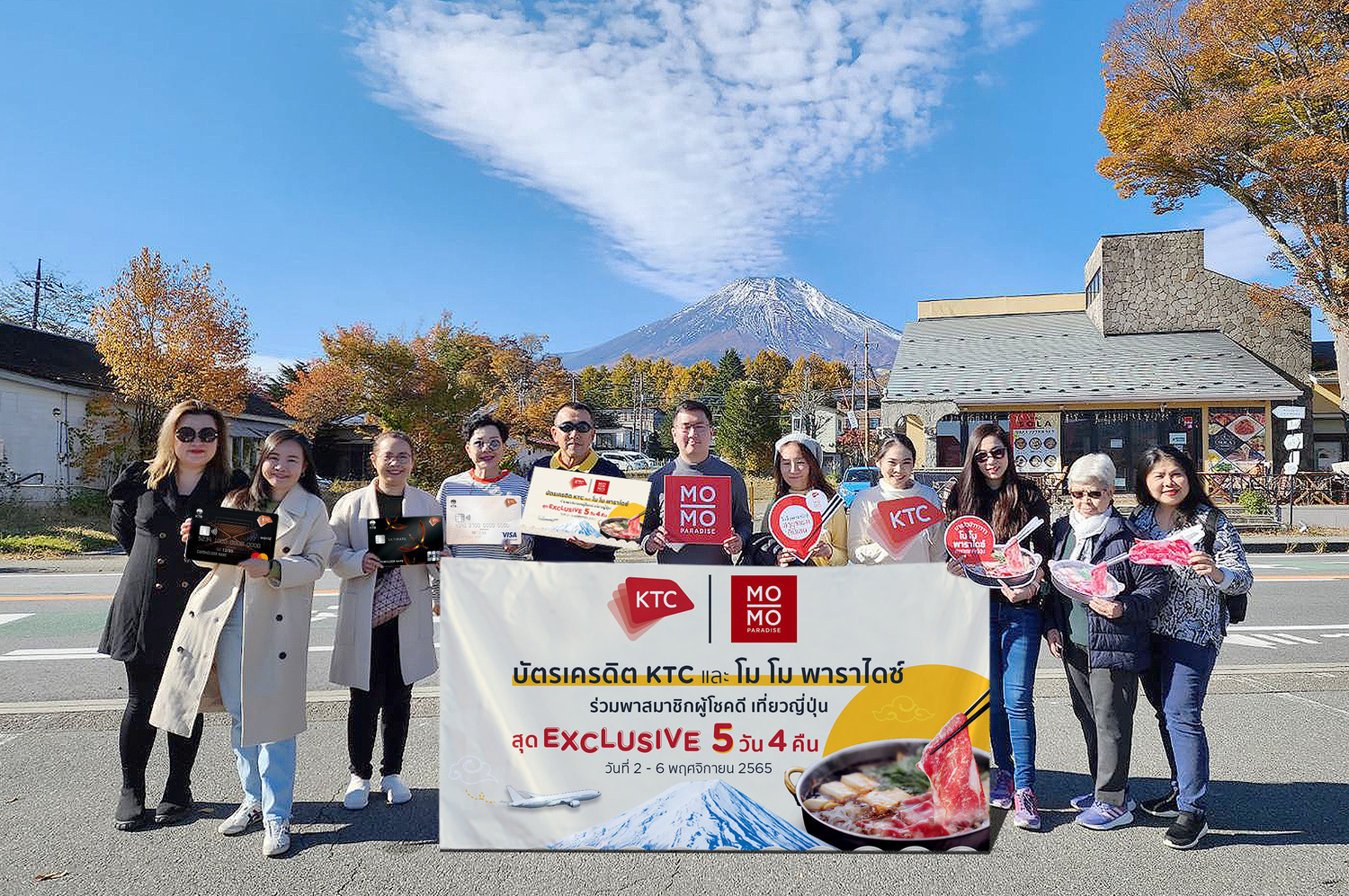 “เคทีซี” หรือ บริษัท บัตรกรุงไทย จำกัด (มหาชน) โดยนางสาววริษฐา พัฒนรัชต์ ผู้จัดการอาวุโส – การตลาดบัตรเครดิต ร่วมกับ โม โม พาราไดซ์” (Mo-Mo-Paradise) ร้านชาบู – สุกี้สไตล์ญี่ปุ่น พาสมาชิกบัตรเครดิตเคทีซีผู้โชคดีจากแคมเปญ “กินลุ้นโก! เอ็กซ์คลูซีฟทริป ทู เจแปน” ที่ใช้จ่ายผ่าน บัตรฯ ที่ร้าน โม โม พาราไดซ์ จำนวน 10 ท่าน ( 5 รางวัล รางวัลละ 2 ที่นั่ง) บินลัดฟ้าร่วมทริปเดินทาง 5 วัน 4 คืน เยือนกรุงโตเกียว ประเทศญี่ปุ่น พร้อมรับประทานมื้ออาหารสุดเอ็กซ์คลูซีฟกับการลิ้มลองชาบูสุกี้ เนื้อลายหินอ่อนที่ร้านโม โม พาราไดซ์ สาขาต้นตำรับใจกลางย่านชินจูกุ เมื่อเร็วๆนี้ โดยมูลค่ารางวัลจากแคมเปญดังกล่าวรวมทั้งสิ้นกว่า800,000 บาท