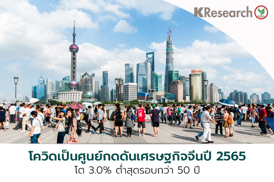 ตลอดทั้งปี 2565 เศรษฐกิจจีนเติบโตได้ที่ 3.0% ได้รับปัจจัยหนุนหลักมาจากการลงทุน โดยตลลอดทั้งปี การลงทุนในสินทรัพย์ถาวรเติบโตอยู่ที่ 5.1% YoY ขณะที่การจับจ่ายใช้สอยของผู้บริโภคได้รับปัจจัยกดดันจากมาตรการโควิดเป็นศูนย์ (-0.2% YoY) ด้านการส่งออกชะลอตัวในช่วงปลายปีจากเศรษฐกิจโลกที่ชะลอตัวลง โดยทั้งปีเติบโตได้เพียง 2.0% YoY