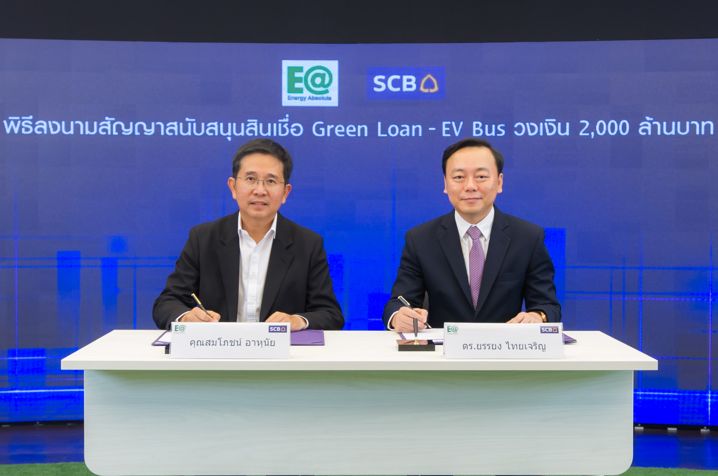 บมจ. พลังงานบริสุทธิ์ (EA) และ ธนาคารไทยพาณิชย์ (SCB) ร่วมลงนามสัญญาเงินกู้สีเขียว 2,000 ล้านบาท เพื่อการลงทุนในโครงการรถโดยไฟฟ้าสารสาธารณะ (EV-Bus) ในพื้นที่กรุงเทพฯ และปริมณฑล สยายปีกเปย์ป๊อป (Pay Pop) ธุรกิจให้เช่าซื้อรถโดยสารไฟฟ้า สนับสนุน EA สู่ธุรกิจรถโดยสารไฟฟ้าเชิงพาณิชย์ไร้มลพิษอย่างครบวงจร โดยมี นายสมโภชน์ อาหุนัย ประธานเจ้าหน้าที่บริหาร บริษัท พลังงานบริสุทธิ์ จำกัด (มหาชน) และ ดร. ยรรยง ไทยเจริญ รองผู้จัดการใหญ่อาวุโส ประธานเจ้าหน้าที่บริหาร กลุ่มธุรกิจ Wholesale ธนาคารไทยพาณิชย์ ร่วมพิธีลงนาม ณ SCB Academy ธนาคารไทยพาณิชย์ สำนักงานใหญ่ เมื่อเร็วๆ นี้
