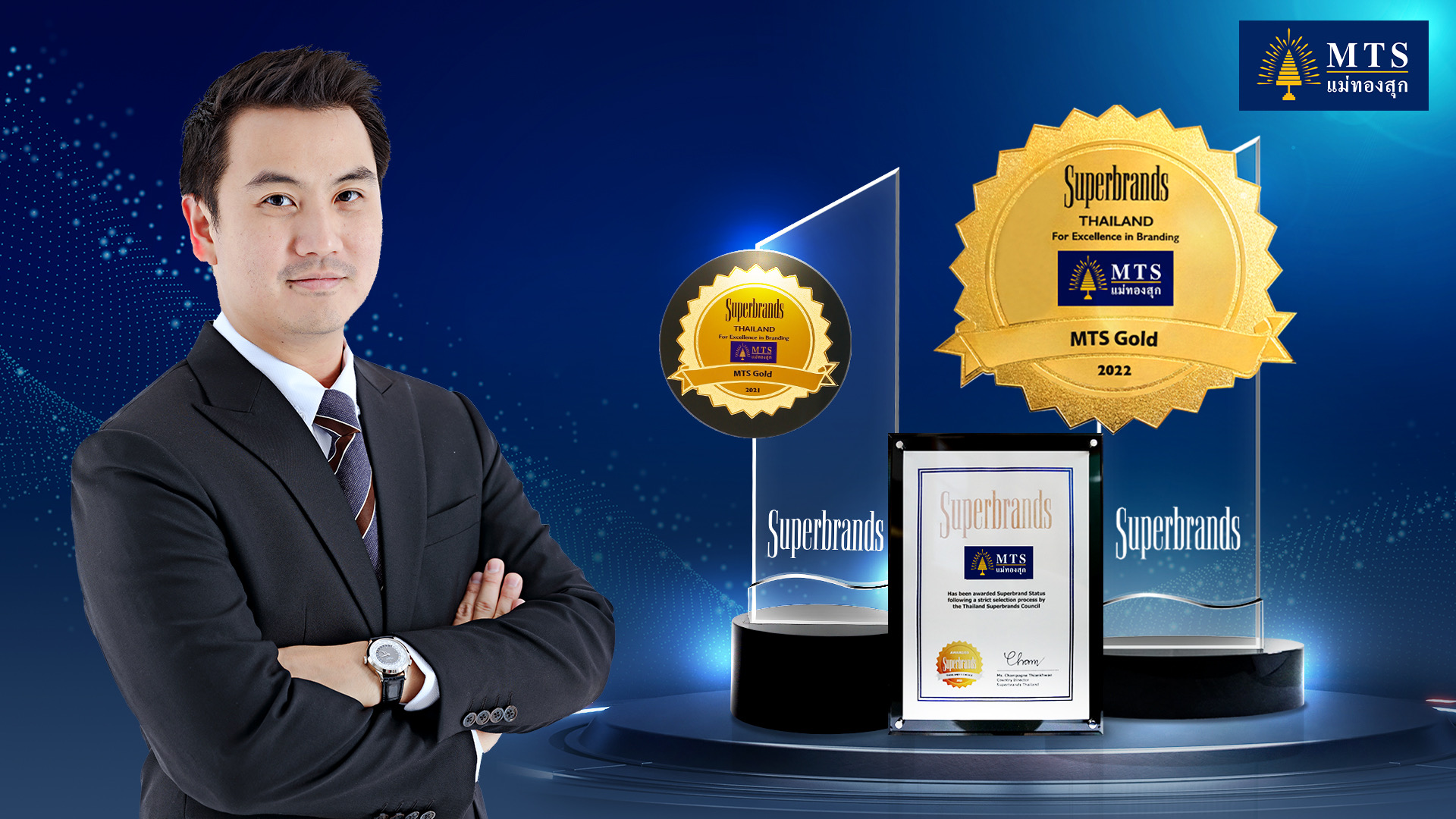 ด้วยความมุ่งมั่นและตั้งใจที่จะสร้างมาตรฐานคุณภาพและการให้บริการของ MTS Gold ทำให้ได้รับรางวัลจากทาง Superbrand ซึ่งเป็นรางวัลอันทรงเกียรติ ที่มอบให้องค์กรที่มีความเป็นเลิศในการสร้างแบรนด์ ให้แข็งแกร่งและเป็นที่ยอมรับในระดับสากล ครอบคลุมทั้งด้านคุณภาพของแบรนด์ (Brand Quality) ความน่าเชื่อถือของแบรนด์ (Reliability) รวมถึงเอกลักษณ์และความโดดเด่นของแบรนด์ (Distinction) ซึ่งได้รับการยอมรับเป็นอย่างสูงจากผู้บริโภคในประเทศไทย รวมทั้งผู้ทรงคุณวุฒิในสายงานด้านการตลาด การสร้างแบรนด์ การประชาสัมพันธ์ สื่อมวลชนและตัวแทนคณะกรรมการอิสระผ่านการสำรวจการตลาดจากทั่วประเทศ