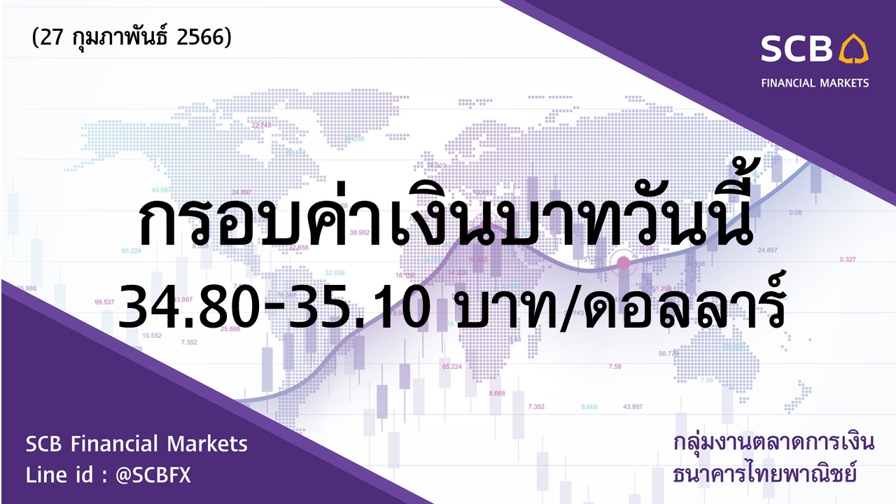- กลุ่มงานตลาดการเงิน ธนาคารไทยพาณิชย์ ประเมินค่าเงินบาทวันนี้เคลื่อนไหวในกรอบ 34.80-35.10บาท/ดอลลาร์
