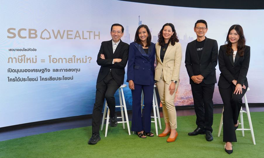 SCB WEALTH จัดงานเสวนาออนไลน์ ผ่านทาง SCB WEALTH Line official ในหัวข้อ “ภาษีใหม่ = โอกาสใหม่? เปิดมุมมองเศรษฐกิจ และการลงทุน ใครได้ประโยชน์ ใครเสียประโยชน์ ” โดยการผนึกกำลังกับทีม Holistic ได้แก่ SCB EIC, SCB CIO และ InnovestX เพื่อให้ข้อมูลที่เป็นประโยชน์ต่อการตัดสินใจลงทุนแก่ลูกค้า SCB WEALTH และนักลงทุนทั่วไป หลังการประกาศอัตราภาษีนำเข้าใหม่ของประธานาธิบดีโดนัลด์ ทรัมป์ ในวันที่ 1 ส.ค. 2568 โดย SCB EIC ชี้การประกาศภาษีใหม่ที่ชัดเจนหนุนให้บรรยากาศเศรษฐกิจโลกผ่อนคลายขึ้น และช่วยให้มุมมองเศรษฐกิจไทยปรับดีขึ้นบ้าง เป็นโอกาสสำหรับธุรกิจไทย ในกลุ่มสินค้าที่เคยกังวลว่าจะสูญเสียความสามารถในการแข่งขันด้านราคาในตลาดสหรัฐฯ ให้ต้องเร่งปรับตัวเพิ่มประสิทธิภาพการผลิตและเชื่อมโยงห่วงโซ่อุปทานในประเทศเพิ่มขึ้นเพื่อแก้ปัญหาสินค้าสวมสิทธิไม่ให้โดนภาษีสหรัฐฯ สูงกว่าอัตราปกติ รวมทั้งยังเป็นโอกาสของกลุ่มสินค้าที่ไทยมีจุดแข็งในตัวและมีความสามารถในการแข่งขันสูงอยู่แล้ว เช่น อาหารแปรรูป กลุ่มเวลเนส และบรรจุภัณฑ์ ขณะที่ InnovestX มองภาษีชัดเจนดีต่อหุ้นไทย แนะเน้นลงทุนแบบ Selective กลุ่มที่ปรับตัวได้ดีรับมือภาษี โดยเฉพาะผู้เลี้ยงสัตว์ โรงพยาบาล โรงไฟฟ้า และนิคมอุตสาหกรรม ขณะที่ SCB CIO มองภาพการค้าชัดเจน แต่การลงทุนยังมีความไม่แน่นอน ต้องจับตาการเจรจาการค้าระหว่างสหรัฐฯ กับประเทศต่างๆ อย่างต่อเนื่อง รวมถึงการออกมาตรการตอบโต้จีนและรัสเซีย ที่นำเข้าน้ำมันรัสเซีย และติดตามศาลตัดสินการใช้อำนาจของประธานาธิบดีเก็บภาษีนำเข้าประเทศต่างๆ แนะนำกลยุทธ์จัดพอร์ตรับมือโอกาสจากนโยบายภาษีใหม่ โดยแบ่งพอร์ตเป็น Core และ Opportunistic ลงทุนหลากหลายเน้นสมดุล พร้อมชี้โอกาสจากตลาดสหรัฐฯ ญี่ปุ่น และธีม AI
