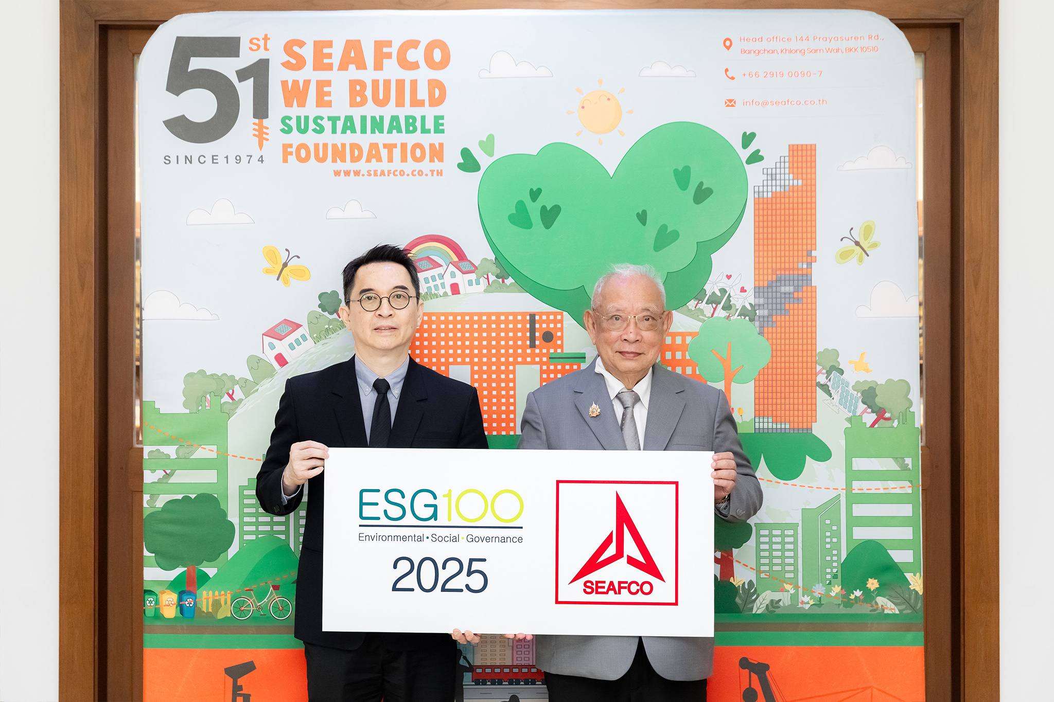 บริษัท ซีฟโก้ จำกัด (มหาชน) (SEAFCO) บริษัทชั้นนำในการก่อสร้างฐานรากและเสาเข็มเจาะในประเทศไทย ได้รับคัดเลือกให้เป็นหนึ่งในบริษัทกลุ่มหลักทรัพย์ ESG100 ที่มีการดำเนินงานโดดเด่นด้านสิ่งแวดล้อม สังคม และธรรมาภิบาล (Environmental, Social and Governance: ESG) จากการประเมินหลักทรัพย์จดทะเบียน ในปี พ.ศ. 2568 โดยสถาบันไทยพัฒน์