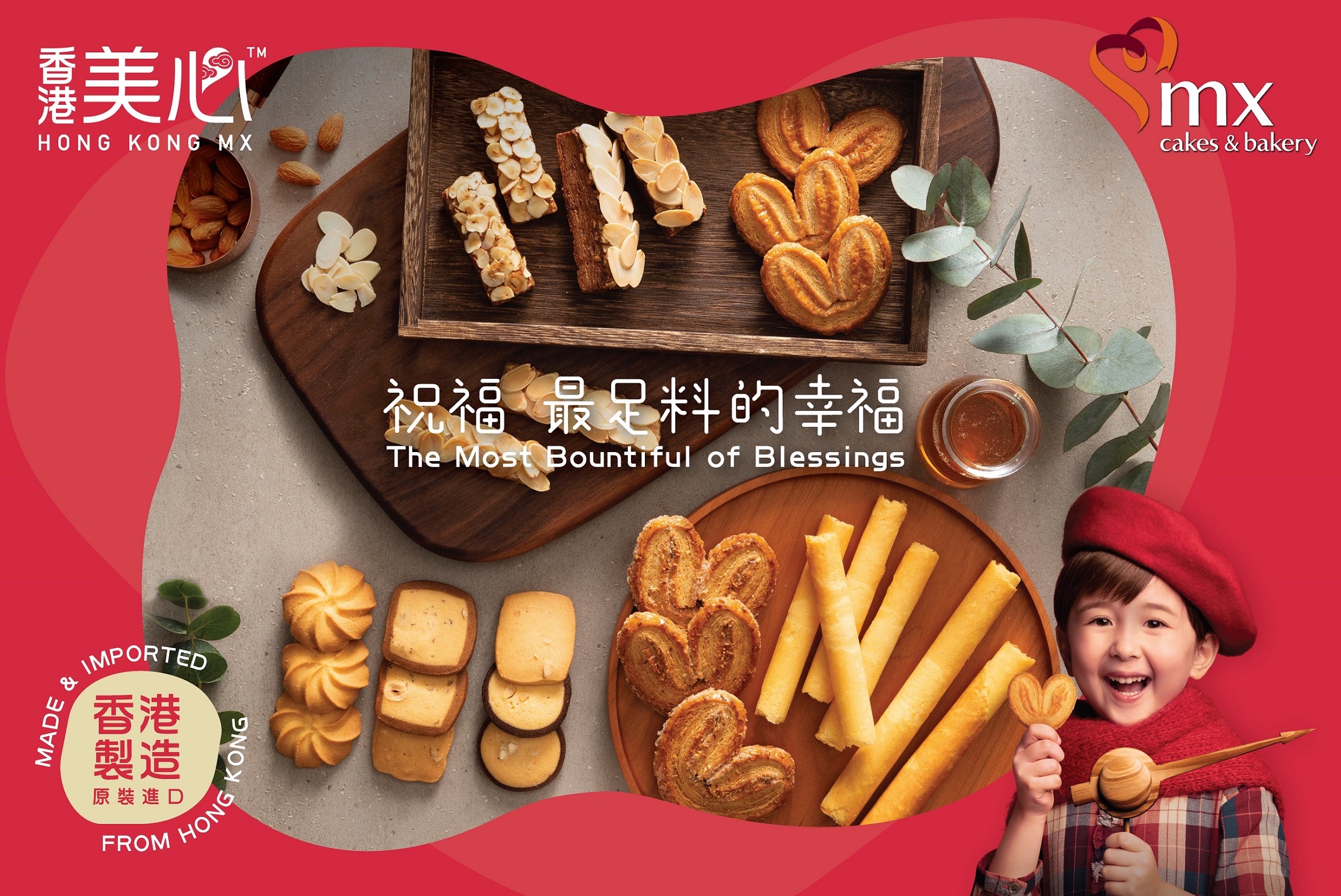 ไม่เพียงเท่านั้น เอ็ม เอ็กซ์ มัดใจพายเลิฟเวอร์ ด้วย ฮาทตี้ บัตเตอร์ เพสทรี่ (Hearty Butter Pastries) ขนมพายกรอบเนยสดและเทคนิคการอบพิเศษ double-baked เพื่อคงความกรอบของคาราเมลชูการ์ ส่วนขนมชื่อดังของฮ่องกงอีกอย่างที่เห็นแล้วต้องจัด คือ อัลมอนด์ มิลล์เฟย (Almond mille-feuilles) รับประกันความอร่อยกรุบกรอบจากแป้ง Puff Pastry ถึง 192 เลเยอร์ แล้วท๊อปด้วยอัลมอนด์สไลซ์ ซึ่งปีนี้ อัลมอนด์ มิลล์เฟย มีทั้งแบบบรรจุภัณฑ์แบบดั้งเดิม