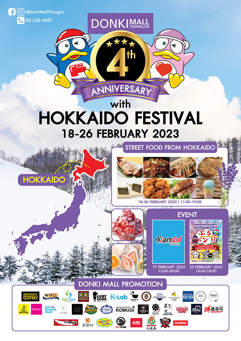 - Street food from HOKKAIDO บริเวณชั้น 1 ที่ขนสตรีทฟู้ดขึ้นชื่อจากเกาะฮอกไกโด ประเทศญี่ปุ่นมาไว้ในที่เดียว จัดตั้งแต่วันนี้ – 26 กุมภาพันธ์ 2566