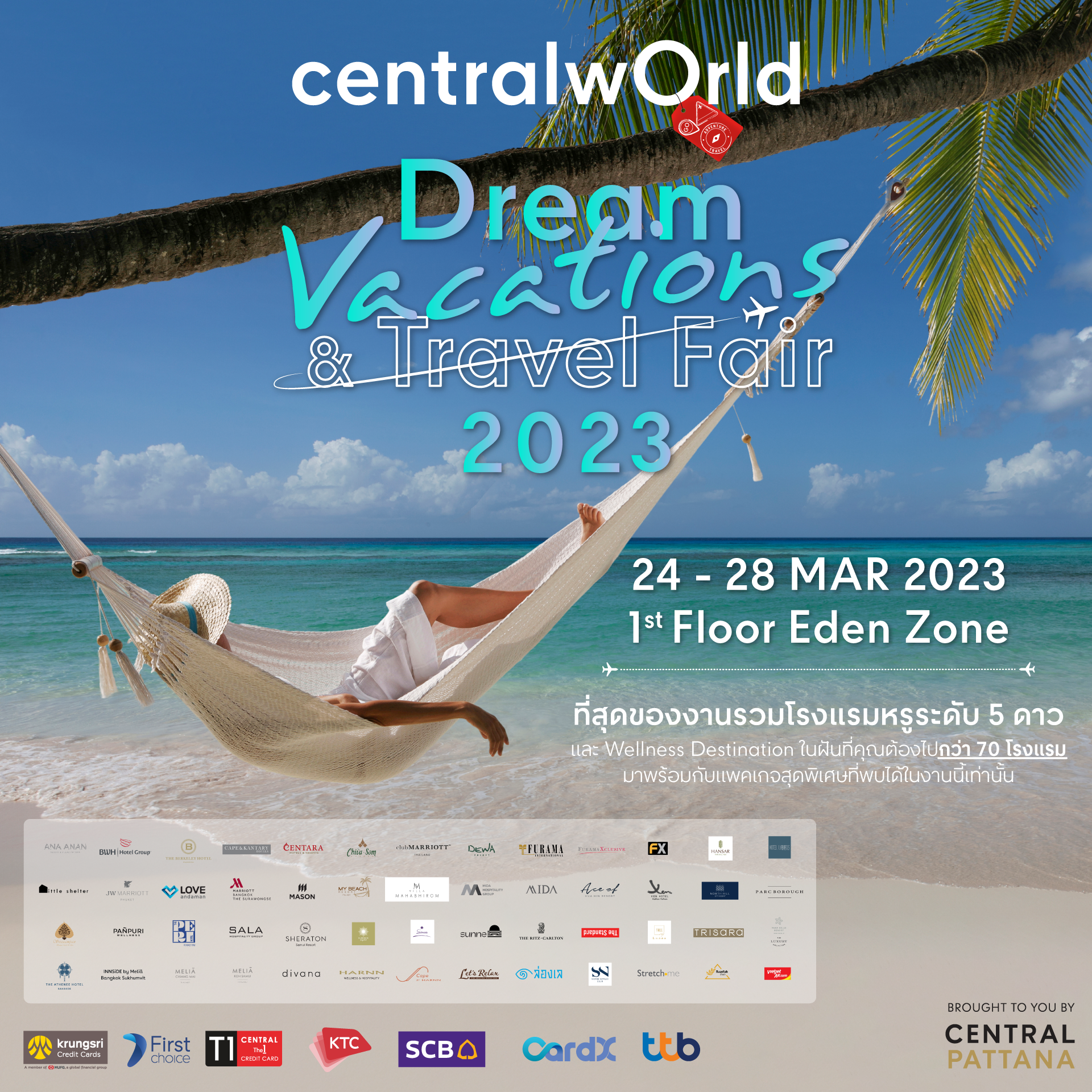 เซ็นทรัลเวิลด์ ต้อนรับซัมเมอร์กับงาน ‘Dream Vacation & Travel Fair 2023’ การกลับมาอีกครั้งของมหกรรมงานท่องเที่ยวระดับเวิลด์คลาสที่ยิ่งใหญ่ที่สุดใจกลางเมือง รวมโรงแรมบูทีครีสอร์ตสุดหรูกว่า 70 แห่ง แบบที่ไม่เคยมีที่ไหนมาก่อน 24-28 มี.ค. 2566 นี้