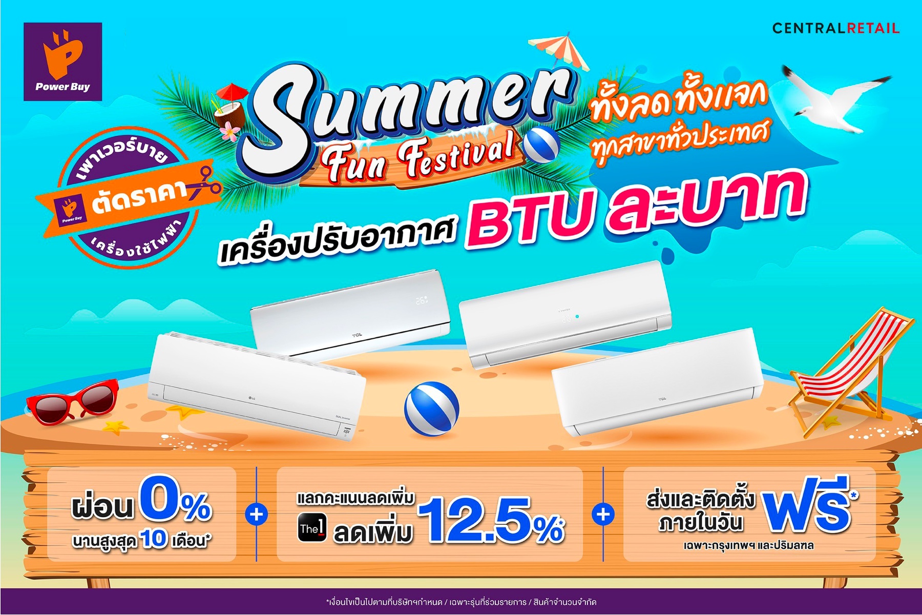 ซัมเมอร์นี้ร้อนแค่ไหนก็ไม่หวั่นเมื่อ เพาเวอร์บาย ในเครือ เซ็นทรัล รีเทล จัดโปรโมชั่นท้าลมร้อน “Power Buy Summer Fun Festival” พาเรดเครื่องใช้ไฟฟ้าไอเทมคลายร้อนจากแบรนด์ดัง ทั้ง เครื่องปรับอากาศ พัดลม พัดลมไอน้ำ ตู้เย็น มาลดกระหน่ำสูงสุด 40% พร้อมดิวสุดฮอต พบเครื่องปรับอากาศราคาคลูๆ เพียง BTU ละบาทเท่านั้น!!!