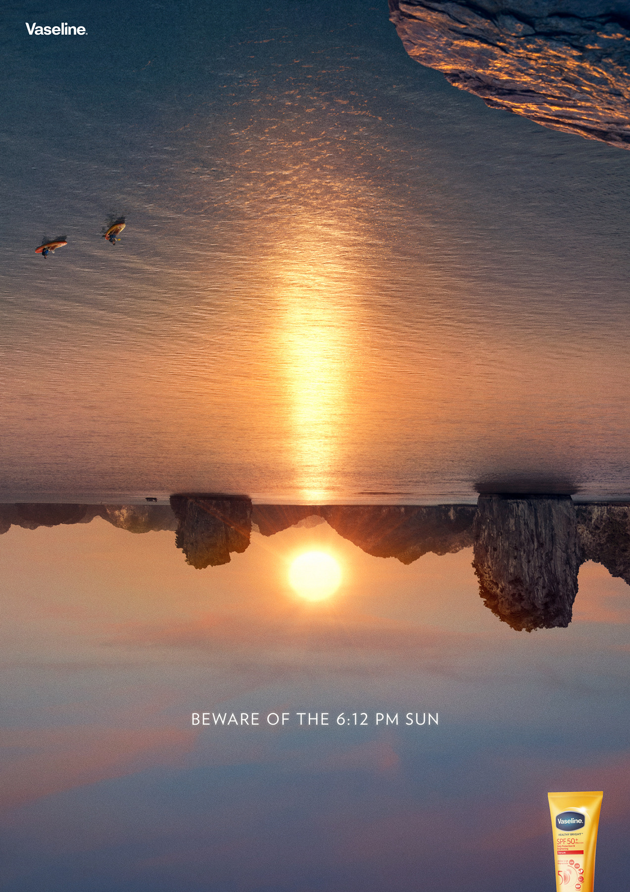 แต่จากผลสำรวจ** กลับพบว่ามีคนไทยเพียง 14.3% รับรู้ว่าแสงแดดในช่วงพระอาทิตย์ขึ้นและพระอาทิตย์ตกดิน ก็มีอันตรายต่อผิวเช่นกัน เนื่องจากดวงอาทิตย์มีการแผ่รังสี UV ออกมาตลอดทั้งวัน แม้ในช่วงที่มีแสงแดดอ่อนๆ ในเวลา 6-8 โมงเช้า หรือเวลา 4-6 โมงเย็น จากงานวิจัยเรื่องปริมาณการแผ่รังสี UV ในประเทศไทย*** ได้มีการเก็บข้อมูลรังสี UV เป็นเวลาสิบปีที่จังหวัดนครปฐม พบว่าดวงอาทิตย์มีการแผ่รังสี UV ตั้งแต่เช้าช่วงเวลาตีห้าครึ่ง โดยมีการแผ่รังสี UV สูงสุดในช่วงเที่ยงวัน และลดการปล่อยรังสีลงจนสิ้นสุดในเวลา 1 ทุ่ม สะท้อนให้เห็นความสำคัญของการทาครีมกันแดดตั้งแต่เช้าตรู่ไปจนถึงช่วงเย็น ว่ายังเป็นสิ่งจำเป็นเพื่อการปกป้องผิวพรรณ ในปี 2565 วาสลีน มีส่วนแบ่งการตลาดที่ 31.6% ของตลาดผลิตภัณฑ์บำรุงผิวกายมูลค่า 8.95 พันล้านบาท วาสลีนในฐานะผู้นำด้านผลิตภัณฑ์บำรุงผิวในประเทศไทย มุ่งมั่นปกป้องผู้บริโภคจากภัยร้ายจากแสงแดดพร้อมสนับสนุนให้ผู้บริโภคใช้ชีวิตได้อย่างเต็มที่โดยไม่ต้องกังวล วาสลีน จึงประกาศความร่วมมือกับโอกิลวี่ ประเทศสิงคโปร์ ร่วมกันเตือนคนไทยผ่านการสื่อสารโดยใช้ ป้ายโฆษณาบิลบอร์ดจากแสงพระอาทิตย์ขึ้นและพระอาทิตย์ตก แสดงสัญลักษณ์ “!” เตือนภัยระดับสากล โดยแคมเปญสัญลักษณ์เตือนภัยนี้ จะปูพรมตามสถานที่ชุมชน 6 แห่งทั่วประเทศ ได้แก่ พาร์ค พารากอน อาคารเอ็มไพร์ทาวเวอร์ เอเชียทีค ท่ามหาราช เมมโมรี่บีช พังงา และอุทยาน 100 ปีจุฬาฯ ตีพิมพ์ลงในนิตยสารชั้นนำ เพื่อแสดงสัญญาณเตือนในช่วงเวลาพระอาทิตย์ขึ้น และพระอาทิตย์ตกโดยเฉพาะ สำหรับสื่อออนไลน์ มีการใช้อินฟลูเอนเซอร์ร่วมสร้างเอ็นเกจเมนต์ ด้วยการเปลี่ยนรูปพระอาทิตย์ขึ้นและพระอาทิตย์ตกเป็นคำเตือนอีกด้วย เพราะวาสลีนเชื่อว่าถ้าผิวดีก็ใช้ชีวิตเต็มที่ได้สุด วาสลีนจึงต้องการให้ทุกคนมีสุขภาพผิวแข็งแรง ด้วยการออกแคมเปญเตือนให้ทุกคนระวังแสงแดด โดยเฉพาะช่วงพระอาทิตย์ขึ้นและพระอาทิตย์ตกที่หลายคนมักมองข้าม หลุยส์ ปิเอเร็ค Senior Global Brand Director วาสลีน กล่าวว่า “ภารกิจของวาสลีนคือการมอบผิวสุขภาพดีให้แก่ทุกคน และให้พวกเขาสามารถใช้ชีวิตได้โดยไม่มีขีดจำกัด เราต้องการสร้างการรับรู้แก่ทุกคนว่าแสงแดดอันตรายต่อผิวในทุกช่วงเวลาของวัน ซึ่งแคมเปญที่เรียบง่ายแต่โดดเด่นของวาสลีนนั้นทำได้จริงแบบตรงจุด”