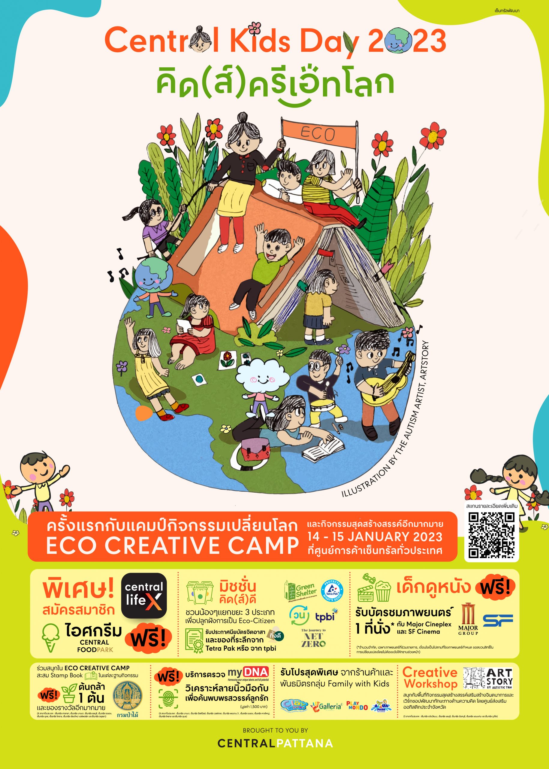 บริษัท เซ็นทรัลพัฒนา จำกัด (มหาชน) ร่วมกับ กรมป่าไม้, ARTSTORY, PLANTOYS, myDNA, Tetra Pak และ TPBI เตรียมเปิดพื้นที่ศูนย์การค้าทั่วประเทศจัดงานฉลองวันเด็กแห่งชาติ ในแคมเปญ “Central Kids Day 2023” คิด(ส์)ครีเอทโลกเปิดลานเล่นสร้างสรรค์สำหรับเด็กเจนอัลฟ่าและครอบครัวได้มีช่วงเวลาแห่งความสุขร่วมกัน