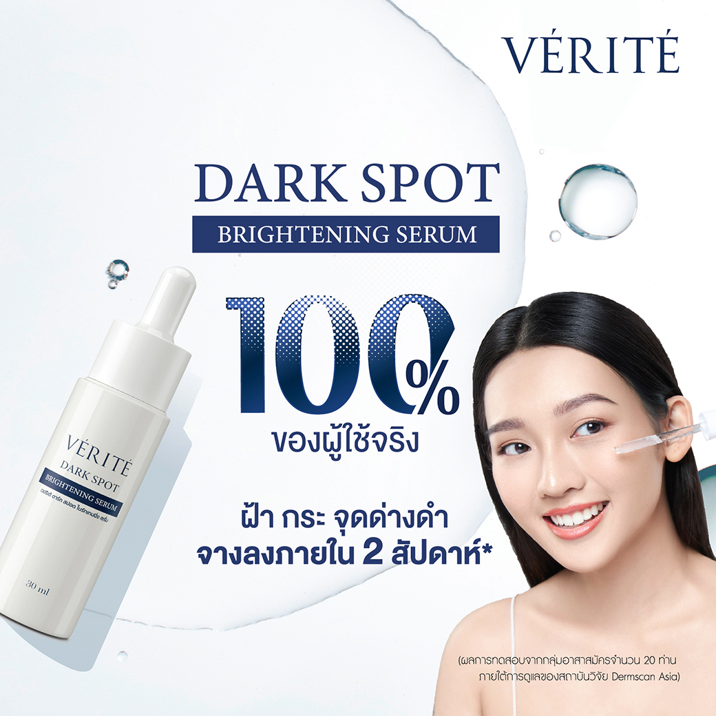 Promotion: Verite Dark Spot Brightening Serum 30 ml. เหลือเพียง 890 บาท (จากราคาปกติ 1,490 บาท) โปรโมชั่นพิเศษนี้ ตั้งแต่ 1 มี.ค. – 31 มี.ค. 2566 ดูโปรโมชั่นพิเศษ และติดตามข่าวสารเพิ่มเติมได้ที่ www.verite.co.th Call Center : 02-259-0111 Line @veritebrand