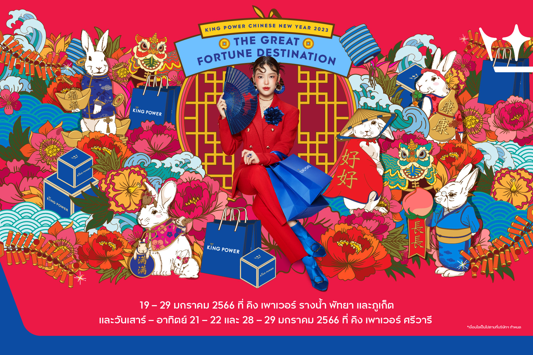 คิง เพาเวอร์ รับการเดินทางครั้งใหม่ ฉลองปีกระต่าย จัดแคมเปญ KING POWER CHINESE NEW YEAR : THE GREAT FORTUNE DESTINATION” ช้อปมั่งคั่งรับปีเถาะพร้อมกิจกรรมเสริมมงคล พิเศษ ! เมื่อช้อปปิ้งในแคมเปญรับ ปี่เซียะรุ่นพิเศษจาก Leila Amulets (ไลลา) จัดทำขึ้นพิเศษเสริมความมั่งคั่งปีกระต่าย รวมถึงเน้นย้ำมาตรการสาธารณสุข SHA PLUS ในฐานะผู้ประกอบการธุรกิจท่องเที่ยวสำหรับเตรียมการรับนักท่องเที่ยวจีน
