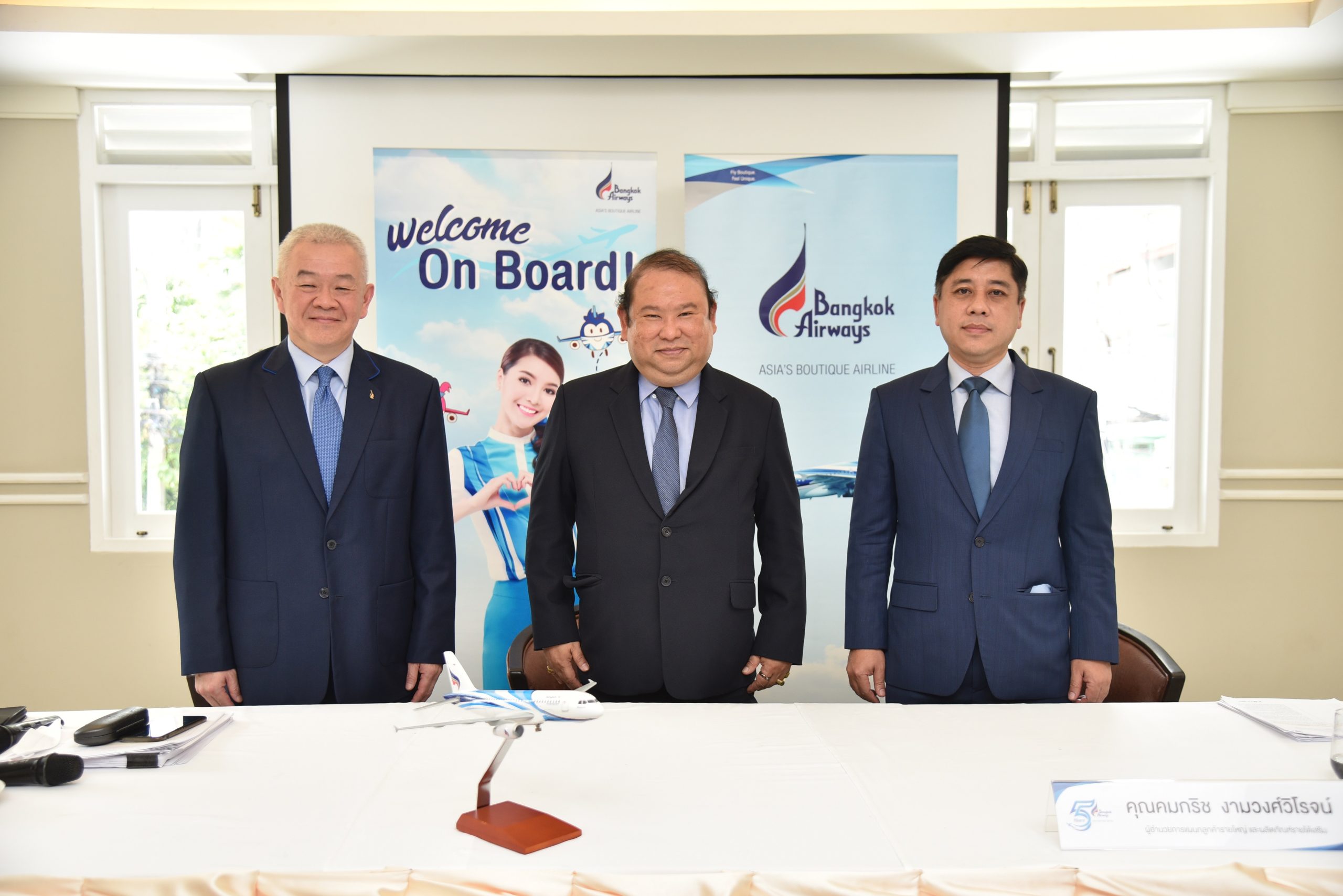 อาทิ บริการเลือกที่นั่งก่อนการเดินทาง บริการสัมภาระฟรี 20 กก. บริการห้องรับรองผู้โดยสารแก่ผู้โดยสารทุกคน บริการอาหารในทุกเที่ยวบิน การบริการระดับพรีเมียมในราคาที่เข้าถึงได้ และจุดแข็งของการเป็นเจ้าของและบริหารงานสนามบิน 3 แห่ง ได้แก่ สนามบินสมุย สนามบินตราด และสนามบินสุโขทัย ที่จะสามารถรองรับเที่ยวบิน และเป็นศูนย์กลางการบินในการเชื่อมต่อระหว่างจุดหมายปลายทางต่างๆ โดยบริษัทฯ มีแผนที่จะเพิ่มศักยภาพเพื่อการรองรับการเดินทาง ในด้านระบบการจัดการ การปรับปรุงด้านกายภาพ การบริหารจัดการด้านสิ่งแวดล้อม ซึ่งจะอยู่ภายใต้ข้อบังคับและกฎระเบียบของหน่วยราชการ และเป็นไปตามมาตรฐานสากล”