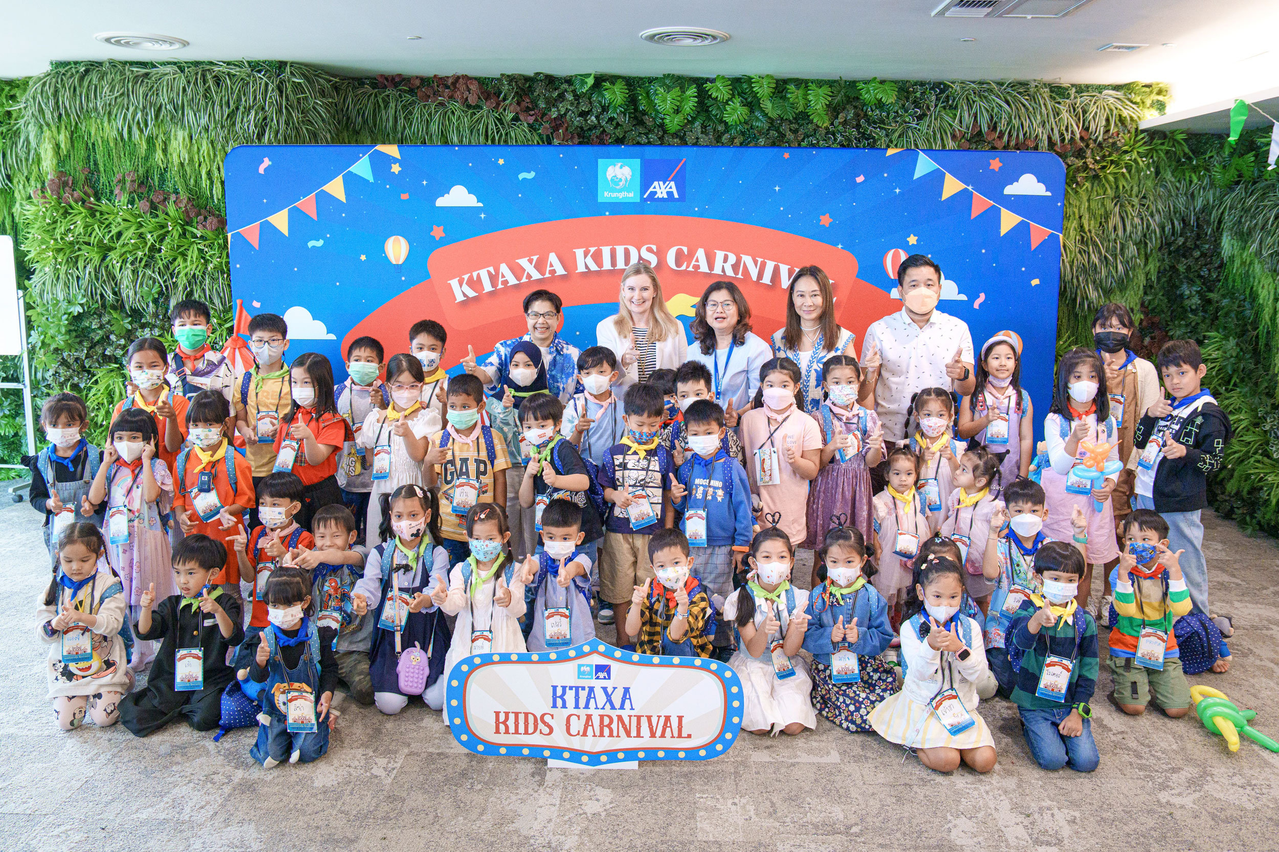 บมจ.กรุงไทย-แอกซ่า ประกันชีวิต นำโดย คุณแซลลี่ โอฮาร่า ประธานเจ้าหน้าที่บริหาร (แถวหลัง คนที่ 6 จากขวา) และคุณบุปผาวดี โอวรารินท์ ประธานเจ้าหน้าที่บริหาร ฝ่ายทรัพยากรบุคคลและภาพลักษณ์องค์กรและการสื่อสารองค์กร (แถวหลัง คนที่ 5 จากซ้าย) เปิดบ้านต้อนรับสมาชิกวัยรุ่นฟันน้ำนม เข้าร่วมกิจกรรมแฟมิลี่เดย์ “KTAXA KIDS CARNIVAL ของเล่นอย่างกู๊ด ฟู๊ดอย่างอร่อย”