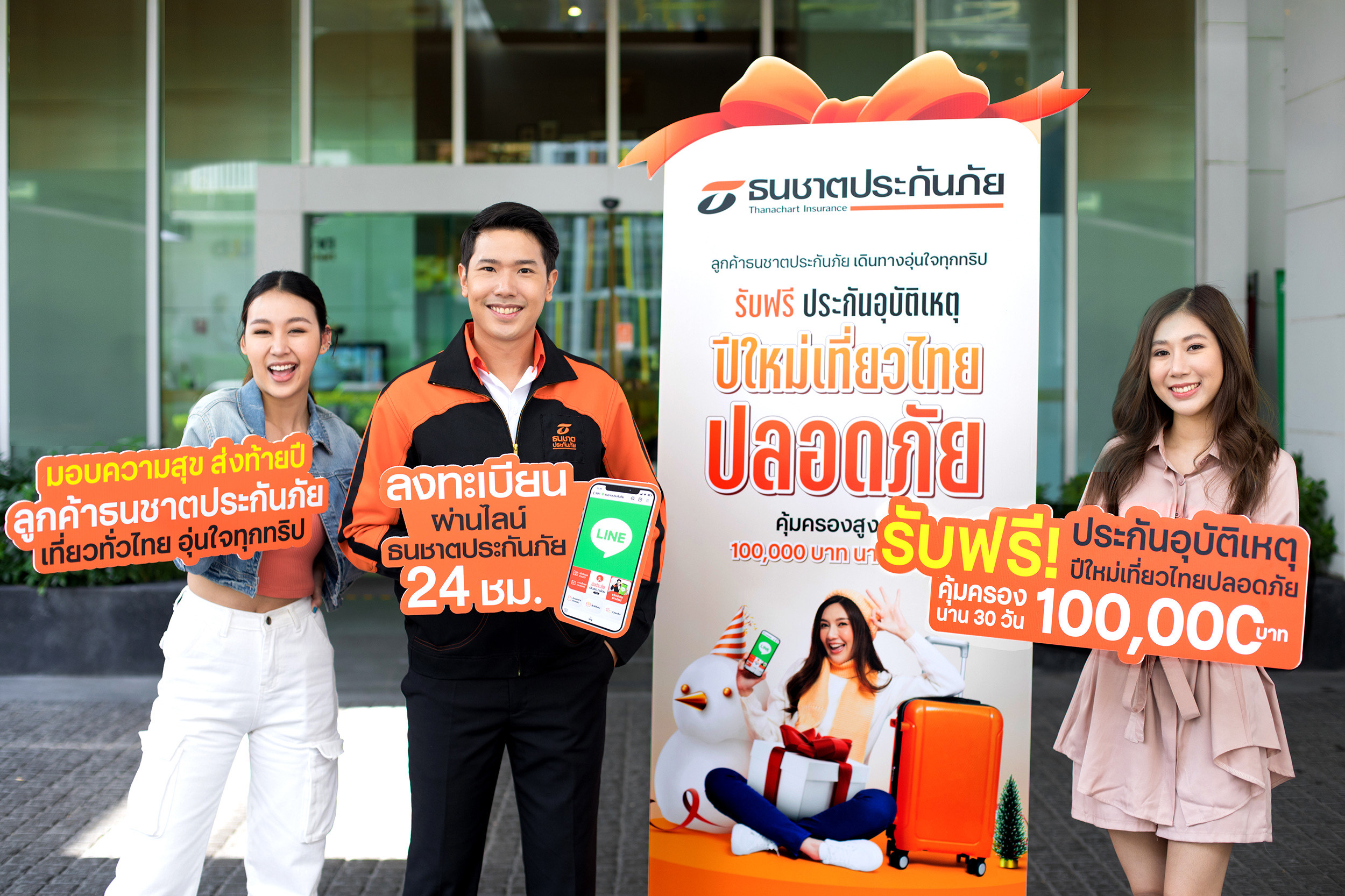ธนชาตประกันภัย เติมรอยยิ้มรับความสุขเทศกาลปีใหม่ 2566 แจกฟรี! ประกันอุบัติเหตุปีใหม่เที่ยวไทยปลอดภัย เพิ่มความมั่นใจให้กับการเดินทางตลอดทริป มอบความคุ้มครองสูงสุด 100,000บาท นานถึง 30 วัน เปิดให้ลูกค้าลงทะเบียนรับสิทธิได้ไม่จำกัดจำนวน ตั้งแต่วันนี้ถึง 29 ธันวาคม 2565