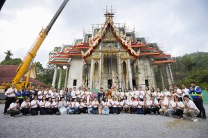 ดร.สมพร สืบถวิลกุล ประธานเจ้าหน้าที่บริหาร บมจ.ทิพย กรุ๊ป โฮลดิ้งส์ และกรรมการผู้จัดการใหญ่ บมจ.ทิพยประกันภัย พร้อมผู้บริหารทิพยประกันภัย หน่วยหนุมานทิพยจิตอาสาและกัลยาณมิตรธรรม จัดโครงการพลังบุญทิพยร่วมสร้างครั้งที่ 210 พิธียกช่อฟ้าอุโบสถ วัดเทพนิมิต จ.นครศรีธรรมราช