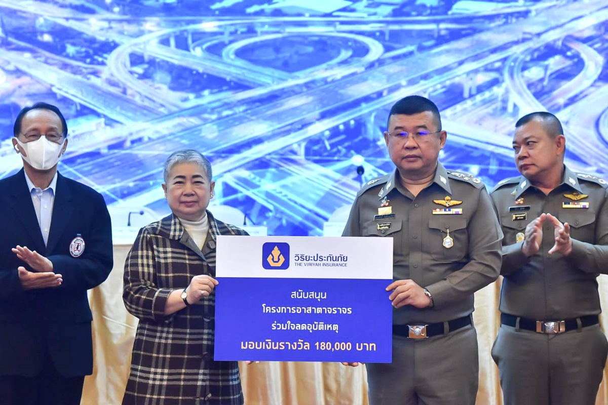 พล.ต.อ.ดำรงศักดิ์ กิตติประภัสร์ ผู้บัญชาการตำรวจแห่งชาติ ในฐานะผู้อำนวยการศูนย์บริหารงานจราจร (ศจร.ตร.) นางสาวกานดา วัฒนายิ่งสมสุข ที่ปรึกษาฝ่ายสื่อสารองค์กร ผู้แทนจากบริษัท วิริยะประกันภัย จำกัด (มหาชน) นายแพทย์แท้จริง ศิริพานิช เลขาธิการมูลนิธิเมาไม่ขับ และภาคเครือข่าย ร่วมแถลงผลการมอบรางวัลและเกียรติบัตรโครงการอาสาตาจราจร ประจำเดือนพฤศจิกายน เดือนธันวาคม 2565 และคลิปอุบัติเหตุ ช่วง 7 วัน ควบคุมเข้มข้นเทศกาลปีใหม่ 2566 ให้แก่เจ้าของคลิปวิดีโอที่ได้รับคัดเลือกจำนวน 28 คลิป ณ ห้องสารสิน ชั้น 2 สำนักงานตำรวจแห่งชาติ