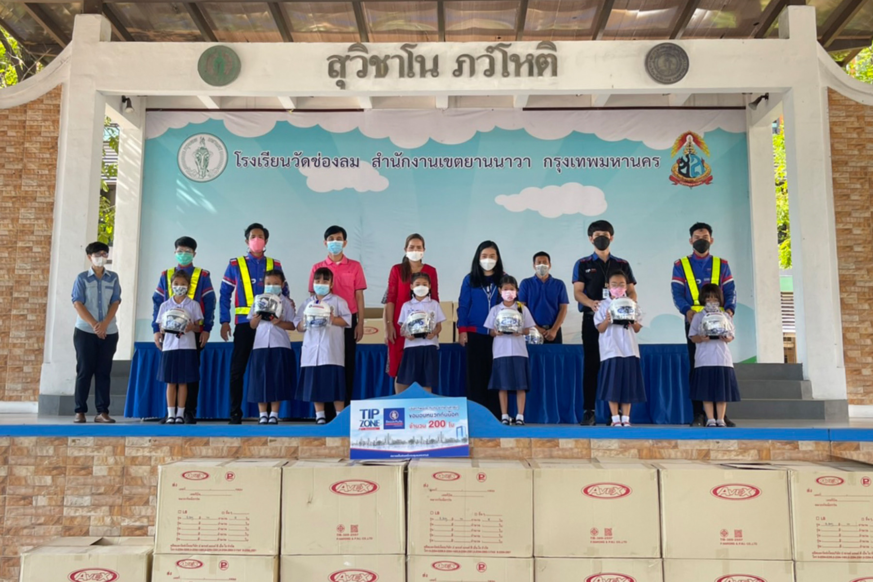 TIP ZONE By ทิพยประกันภัย มอบหมวกกันน็อคสำหรับนักเรียนโรงเรียนวัดช่องลม จำนวน 200 ใบ ตามโครงการ “TIP ZONE by ทิพยประกันภัย ร่วมสร้างสังคมปลอดภัย” พร้อมทั้งจัดกิจกรรมให้ความรู้เรื่องการสวมหมวกกันน็อคที่ถูกวิธี การซ้อนมอเตอร์ไซค์ที่ถูกต้อง ปลอดภัย และข้อควรระวังขณะซ้อนท้ายมอเตอร์ไซค์ เพื่อเป็นการปลูกฝังให้ตระหนักถึงความปลอดภัย และความเข้าใจในการช่วยป้องกันและลดความรุนแรงจากเการเกิดอุบัติเหตุ โดยมี นายทรงกรด แน่นหนา ผู้อำนวยการสถานศึกษาโรงเรียนวัดช่องลม นางสาวนงราม ปรีชาสุชาติ รองผู้อำนวยการสถานศึกษาโรงเรียนวัดช่องลม รับมอบ ณ โรงเรียนวัดช่องลม เขตยานนาวา กรุงเทพฯ