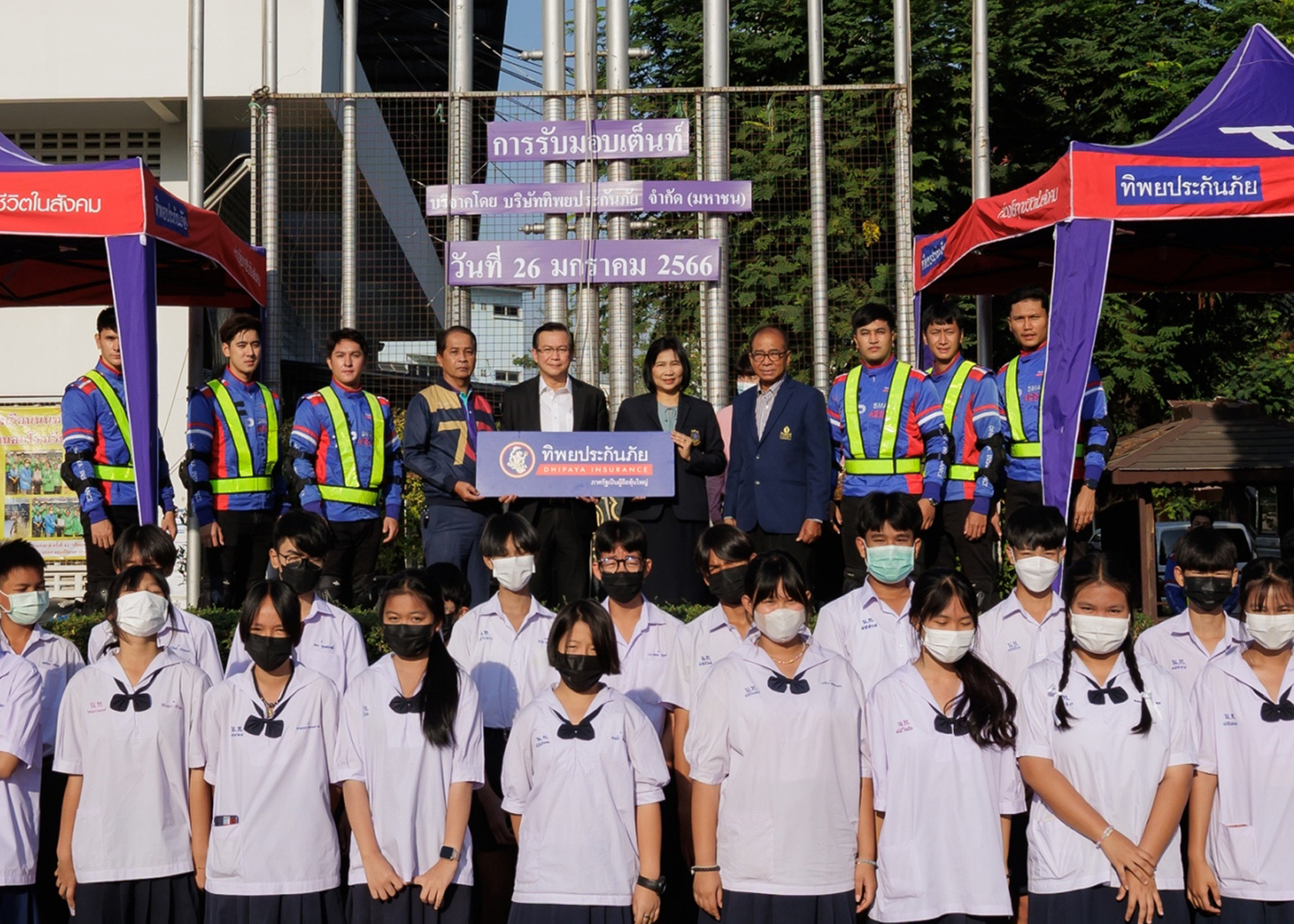 ดร.สมพร สืบถวิลกุล ประธานเจ้าหน้าที่บริหาร บมจ. ทิพย กรุ๊ป โฮลดิ้งส์ และกรรมการผู้จัดการใหญ่ บมจ.ทิพยประกันภัย มอบเต็นท์ให้โรงเรียนได้นำไปใช้ในกิจกรรมต่างๆของโรงเรียน และพัฒนาด้านการศึกษาของนักเรียน ซึ่งเป็นฐานรากที่สำคัญของการพัฒนาด้านต่างๆของประเทศชาติในอนาคต โดยมี นางณัฐพัชร์ ศิริเสถียร ผู้อำนวยการโรงเรียนนนทรีวิทยา รับมอบ ณ โรงเรียนนนทรีวิทยา