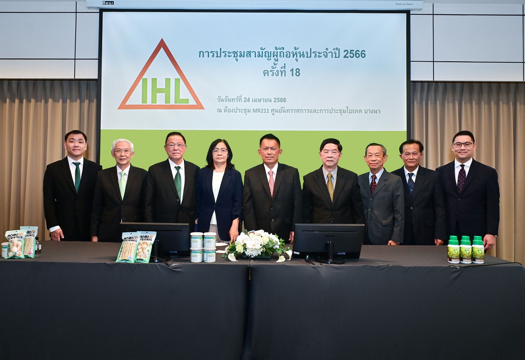 คุณองอาจ ดำรงสกุลวงษ์ ประธานกรรมการบริหาร (ประธานในที่ประชุม), คุณกุลวรินทร์ วีระพุฒิเวทย์ กรรมการและรองกรรมการผู้จัดการ, คุณวศิน ดำรงสกุลวงษ์ กรรมการและผู้จัดการทั่วไป พร้อมด้วยคณะกรรมการ บริษัท อินเตอร์ไฮด์ จำกัด (มหาชน) (IHL) ถ่ายภาพร่วมกันภายหลังการประชุมสามัญผู้ถือหุ้นประจำปี 2566 โดยผู้ถือหุ้นมีมติอนุมัติจ่ายเงินปันผล 0.10 บาท/หุ้น กำหนดจ่ายเงินปันผลวันที่ 18 พฤษภาคม 2566