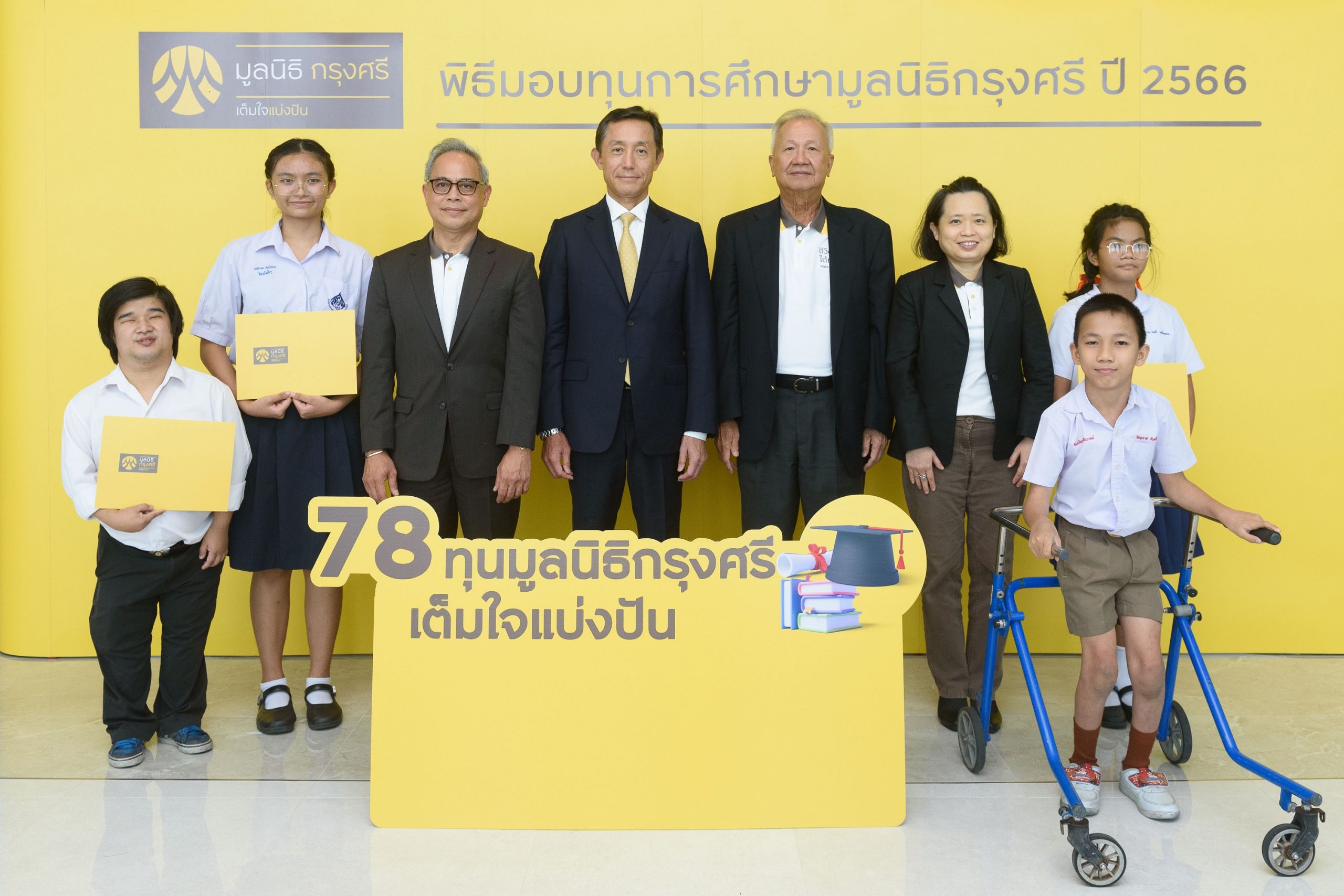 นายเซอิจิโระ อาคิตะ รองประธานกรรมการและเหรัญญิกมูลนิธิกรุงศรี พร้อมด้วยคณะกรรมการมูลนิธิฯ และผู้บริหารระดับสูงของกรุงศรี มอบทุนการศึกษาอย่างต่อเนื่องให้แก่เยาวชนที่มีผลการเรียนและความประพฤติดี จำนวน 78 คน จากสถานสงเคราะห์และมูลนิธิต่างๆ รวม 7 แห่ง ตลอดระยะเวลา 6 ปีที่ผ่านมา มูลนิธิกรุงศรีได้มอบทุนการศึกษาเพื่อสร้างโอกาสทางการศึกษาให้แก่เยาวชนรวมทั้งสิ้น 453 คน สะท้อนถึงพันธกิจที่สำคัญของมูลนิธิฯ ในการสนับสนุนความเสมอภาคทางการศึกษา เพื่อพัฒนาการทางเศรษฐกิจและสังคมที่ยั่งยืนต่อไป