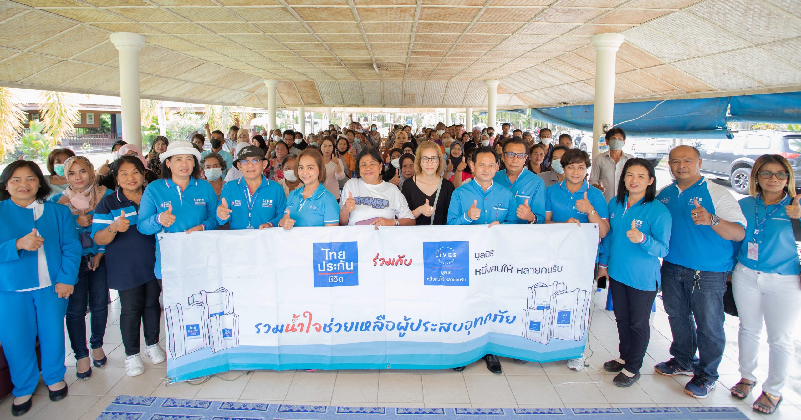 นายบุญชอบ เสนารักษ์ ผู้ทำหน้าที่ผู้จัดการฝ่าย 53 ผู้แทนบริษัท ไทยประกันชีวิต จำกัด (มหาชน) และนางมะลิ  หอมกระแจะ อนุกรรมการและเลขานุการฝ่ายปฏิบัติการ มูลนิธิหนึ่งคนให้ หลายคนรับ พร้อมทีมฝ่ายขายจิตอาสาไทยประกันชีวิต ลงพื้นที่มอบถุงยังชีพ จำนวน 500 ชุด เพื่อช่วยเหลือผู้ประสบอุทกภัยในำเภอสุไหงปาดี และ อำเภอเมือง ังหวัดนราธิวาส