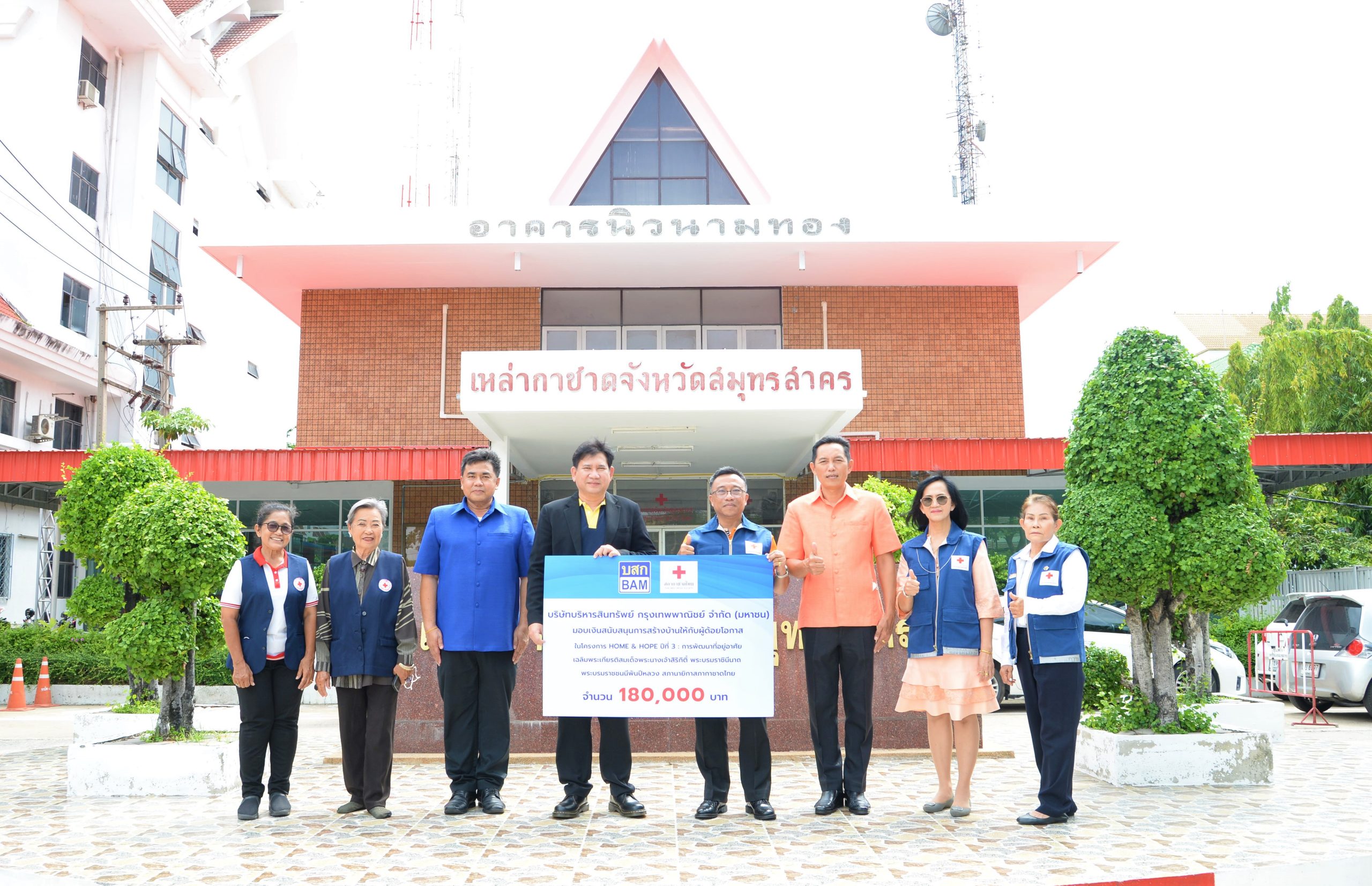 นายดนัย ด้วงเจริญ ผู้อำนวยการฝ่ายสื่อสารองค์กรและนักลงทุนสัมพันธ์ บริษัทบริหารสินทรัพย์ กรุงเทพพาณิชย์ จำกัด (มหาชน) หรือ BAM มอบเงินสนับสนุนการก่อสร้างบ้านให้กับผู้ด้อยโอกาส ในพื้นที่ตำบลบ้านบ่อ อำเภอสมุทรสาคร จังหวัดสมุทรสาคร จำนวน 180,000 บาท