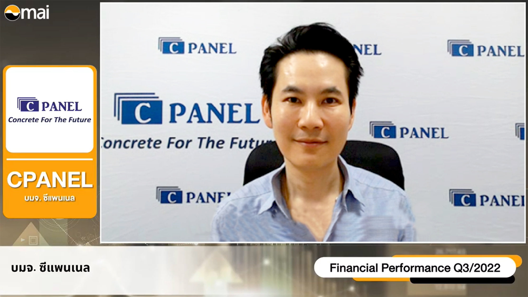 นายชาคริต ทีปกรสุขเกษม กรรมการผู้จัดการบริษัท ซีแพนเนล จำกัด (มหาชน) หรือ CPANEL ให้ข้อมูลสรุปผลประกอบการไตรมาส 3/65 รายได้รวม 122.15 ล้านบาท กำไรสุทธิ 24.35ล้านบาท เพิ่มขึ้น 613.29% ซึ่งเป็นการทำ All Time High 5 ไตรมาสติดต่อกัน พร้อมเผยทิศทางธุรกิจไตรมาส 4/65 มีแนวโน้มที่ดี ภาพรวมอสังหาคึกคัก ประกาศปรับเป้าหมายรายได้ปี 65 โต35% ในงานบริษัทจดทะเบียนพบผู้ลงทุน(Opportunity Day) ผ่านช่องทาง Streaming ของเว็บไซต์ตลาดหลักทรัพย์แห่งประเทศไทย สามารถรับชมบันทึกเทปได้ที่ www.set.or.th/streaming/vdos-oppday