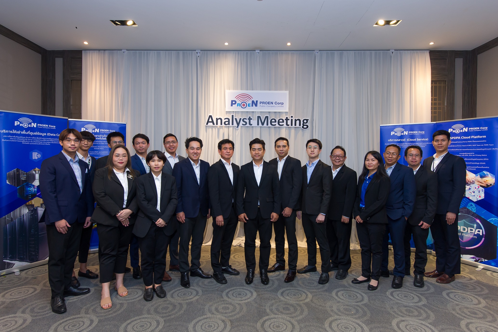 นายกิตติพันธ์ ศรีบัวเอี่ยม ประธานเจ้าหน้าที่บริหาร พร้อมทีมผู้บริหาร บริษัท โปรเอ็น คอร์ป จำกัด (มหาชน) (PROEN) และนักวิเคราะห์จากบริษัทหลักทรัพย์ชั้นนำ ถ่ายภาพร่วมกันเนื่องในโอกาสจัดประชุมนักวิเคราะห์ (Analyst Meeting) สำหรับการนำเสนอผลประกอบการไตรมาส 3 ของปี 2022 พร้อมอัพเดทแผนการดำเนินธุรกิจ