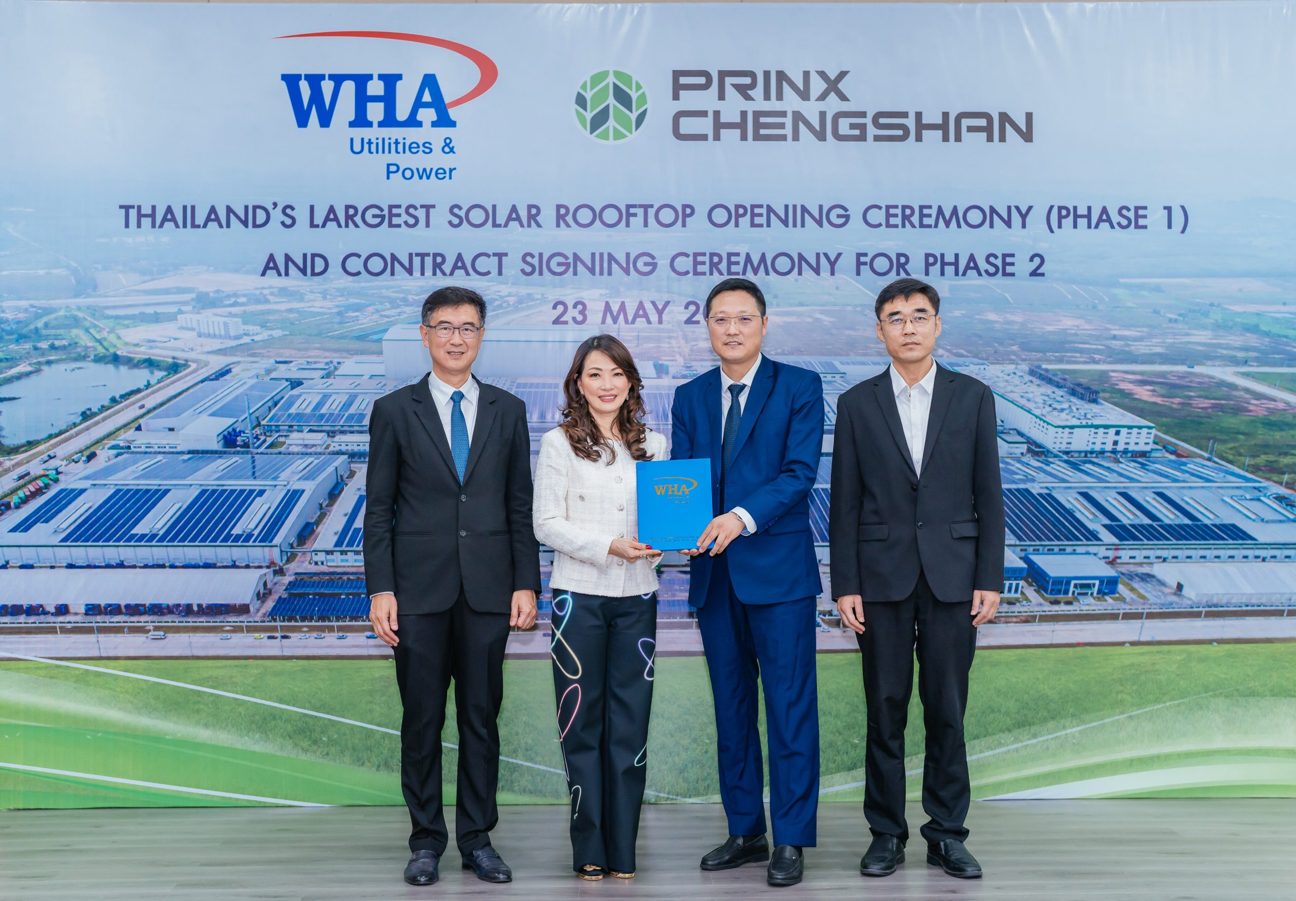 นางสาวจรีพร จารุกรสกุล ประธานคณะกรรมการบริหาร และประธานเจ้าหน้าที่บริหารกลุ่ม บริษัท ดับบลิวเอชเอ คอร์ปอเรชั่น จำกัด (มหาชน) พร้อมด้วย นายสมเกียรติ เมสันธสุวรรณ ประธานเจ้าหน้าที่บริหาร บมจ.ดับบลิวเอชเอ ยูทิลิตี้ส์ แอนด์ พาวเวอร์ (“WHAUP”) และ มร. จาง โหย่ว กั้น คณะกรรมการผู้จัดการและผู้จัดการทั่วไปโรงงาน ปริ๊งซ์ เฉิงซาน ไทร์ (ประเทศไทย)