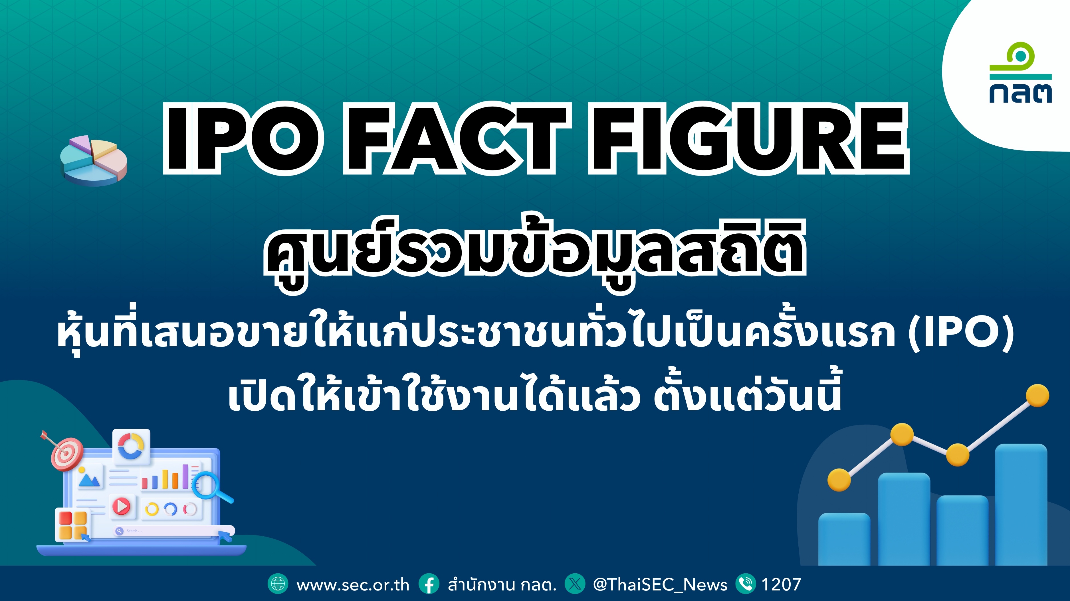 ก.ล.ต. จัดทำศูนย์รวมข้อมูลสถิติเกี่ยวกับหุ้นที่เสนอขายให้แก่ประชาชนทั่วไปครั้งแรก (IPO) ภายใต้ชื่อ “IPO Fact Figure” เพื่อช่วยให้ผู้ลงทุนมีข้อมูลสถิติและการเปรียบเทียบในการนำไปใช้ประกอบการตัดสินใจลงทุนได้สะดวกขึ้น