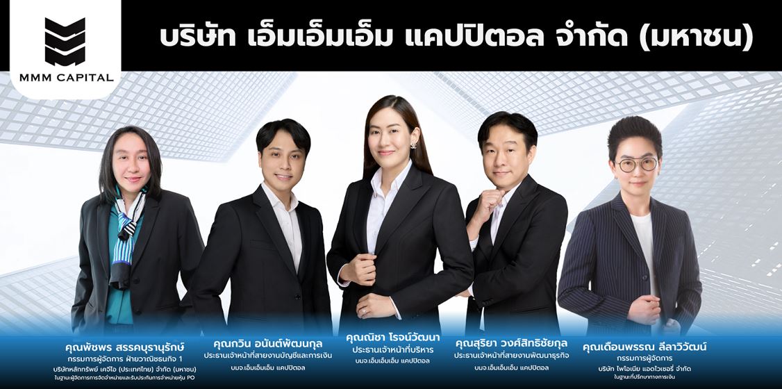 นางสาวณิชา โรจน์วัฒนา ประธานเจ้าหน้าที่บริหาร บริษัท เอ็มเอ็มเอ็ม แคปปิตอล จำกัด (มหาชน) หรือ MMM หนึ่งในผู้นำด้านตัวแทนการขายอสังหาริมทรัพย์ ภายใต้การให้บริการที่ปรึกษาด้านการขายและการตลาดแก่ผู้ประกอบการพัฒนาอสังหาฯ และซื้อขายอสังหาฯ เปิดเผยว่า บริษัทฯ พร้อมเดินหน้าเสนอขายหุ้นสามัญเพิ่มทุนแก่ประชาชนทั่วไป (PO) จำนวน 64.2 ล้านหุ้น ตามแผนการระดมทุน เข้าจดทะเบียนในตลาดหลักทรัพย์ เอ็ม เอ ไอ (mai) โดยโรดโชว์ในครั้งนี้ MMM ร่วมกับ บริษัท ไพโอเนีย แอดไวเซอรี่ จำกัด ที่ปรึกษาทางการเงิน และบริษัทหลักทรัพย์ เคจีไอ (ประเทศไทย) จำกัด (มหาชน) ในฐานะผู้จัดการการจัดจำหน่ายและรับประกันการจำหน่ายหุ้น PO (Lead Underwriter) เพื่อร่วมกัน ตอกย้ำศักยภาพการดำเนินธุรกิจ รวมถึงศักยภาพ จุดเด่น และโอกาสการเติบโตของบริษัทฯ ก่อนที่จะเสนอขายหุ้น PO ในเร็วๆ นี้