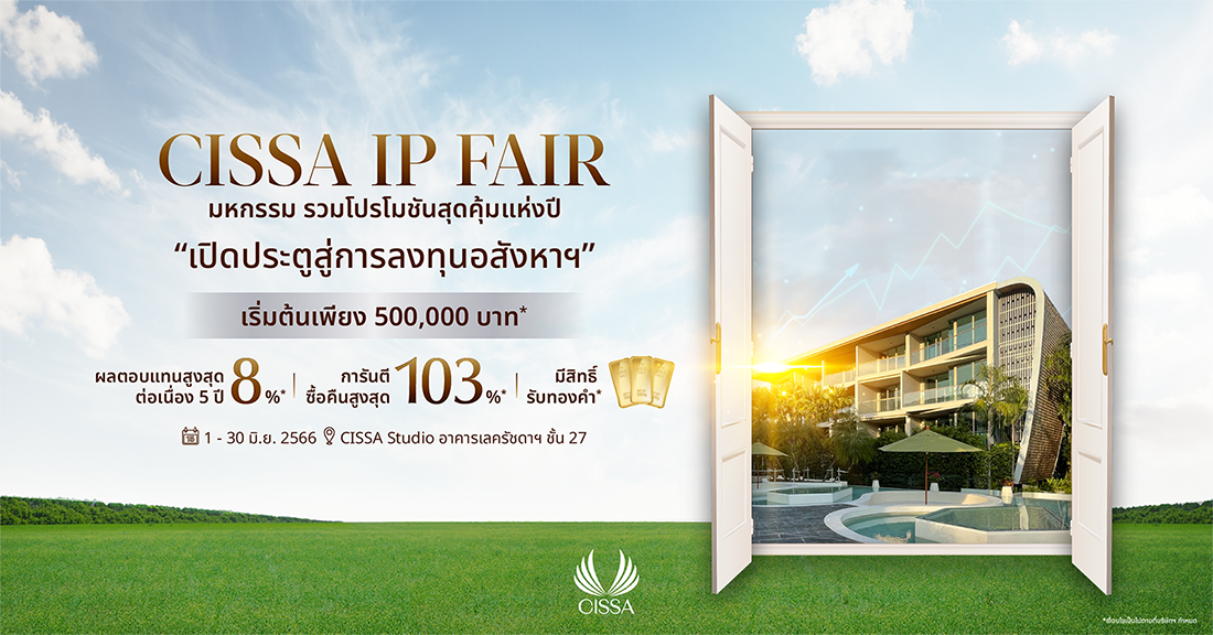และเพื่อเป็นการรุกตลาดอสังหาฯปิดท้ายครึ่งปีแรก 2566 บริษัทฯได้เอาใจนักลงทุน ด้วยการจัดโปรโมชั่นเด็ด “CISSA IP Fair” มหกรรมรวมโปรโมชั่นสุดคุ้มแห่งปี ด้วยการลงทุนเป็นเจ้าของร่วมโรงแรมระดับ 5 ดาวพรีเมี่ยมได้ในราคาเริ่มต้นเพียง 500,000 บาท ที่ โครงการ “วินแดม แกรนด์ ในหาน บีช ภูเก็ต”(Wyndham Grand Nai Harn Beach Phuket) พร้อมรับสิทธิพิเศษให้เลือกมากมาย อาทิ