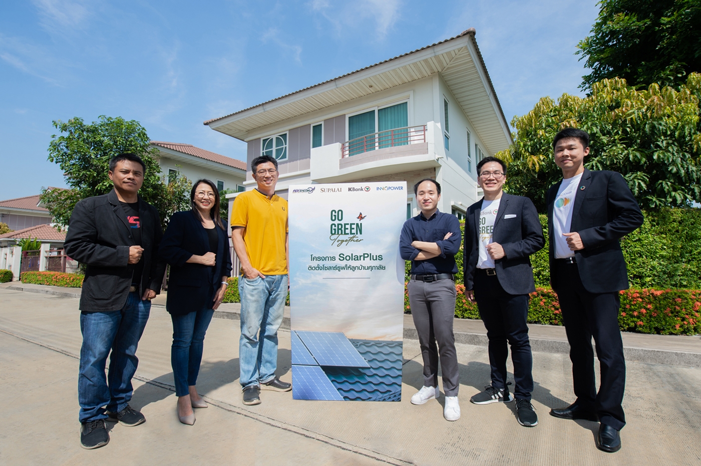 บริษัท ศุภาลัย จำกัด (มหาชน) จับมือพันธมิตรที่ใส่ใจเป็นมิตรต่อสิ่งแวดล้อม รุกหน้าติดตั้งโซลาร์รูฟให้ลูกบ้านศุภาลัย ภายใต้โครงการ SolarPlus ของธนาคารกสิกรไทย โดยมีนางสาวธัญวรัตน์ ปัญญารัตน์ ผู้ช่วยกรรมการผู้จัดการ บริษัท ศุภาลัย จำกัด (มหาชน) พร้อมด้วยดร.กรินทร์ บุญเลิศวณิชย์ รองกรรมการผู้จัดการ ธนาคารกสิกรไทย นายรชต ดีอารมย์ กรรมการผู้จัดการ บริษัท พีอีเอ เอ็นคอม สมาร์ท โซลูชั่น จำกัด และนายไชยรพี เลี้ยงบุญเลิศชัย Head of Strategic Partnership บริษัท อินโนพาวเวอร์ จำกัด