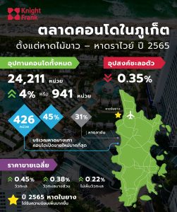 หลังจากที่สถานการณ์โรคระบาดโควิค – 19 ทุเลาลง สถานการณ์การตลาดคอนโดมิเนียมในภูเก็ตเริ่มมีการทยอยฟื้นตัวอย่างช้าๆ นักท่องเที่ยวชาวต่างชาติได้กลับเข้ามาท่องเที่ยวมากขึ้น ผู้ประกอบการเริ่มกลับมาทำการตลาดและพัฒนาโครงการต่ออีกครั้ง หลังจากที่หยุดโครงการไปเนื่องจากปัญหาของการขนส่งวัสดุก่อสร้าง อีกทั้งกลุ่มนักลงทุนชาวต่างชาติที่ไม่สามารถทำธุรกรรมโอนเงินข้ามประเทศเพื่อมาชำระงวดเงิน (Payment Term) ในช่วงที่มีการก่อสร้างคอนโดมิเนียมตามเงื่อนไขสัญญาได้ ส่งผลให้หลายโครงการไม่สามารถสร้างโครงการต่อได้ในช่วงเวลาหนึ่ง ทำให้ภาพรวมตลาดคอนโดมิเนียมในภูเก็ตในช่วงที่ผ่านมาเกิดการชะลอตัวทั้งในแง่อุปทานและอุปสงค์เช่นกัน จากการสำรวจและรวบรวมข้อมูลในช่วงครึ่งปีหลังที่ผ่านมาจนถึง ณ สิ้นปี พ.ศ. 2565 พบว่าความต้องการคอนโดมิเนียมมีความต้องการเพิ่มขึ้นแต่ก็ยังไม่เป็นที่นิยมมากเมื่อเทียบกับตลาดวิลล่าในภูเก็ต ณ ช่วงเวลาเดียวกัน