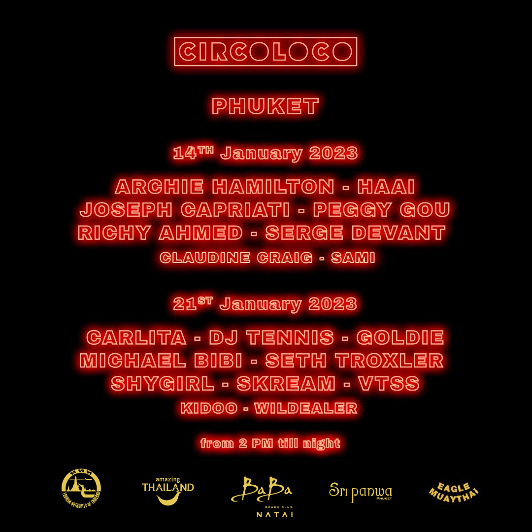 Circoloco หนึ่งในผู้จัดปาร์ตี้ชื่อดังจากอิบิซา เกาะในทะเลเมดิเตอร์เรเนียน เดินสายทัวร์แถบเอเชียแปซิฟิก เตรียมขนทัพความสนุกที่ทุกคนรอคอยมาถึงที่ประเทศไทยในอีกไม่นานเกินรอ โดยจะสร้างความสุขผ่านเสียงดนตรีให้กับปาร์ตี้เลิฟเวอร์ผู้หลงใหลในเสียงเพลง โดยปาร์ตี้ระดับอินเตอร์นี้จะจัดขึ้นที่ บาบา บีช คลับ นาใต้ วันเสาร์ที่ 14 และวันเสาร์ที่ 21 มกราคม 2566 เวลา14.00 น. – 02.00 น. งานเทศกาลดนตรีที่เลื่องชื่อ